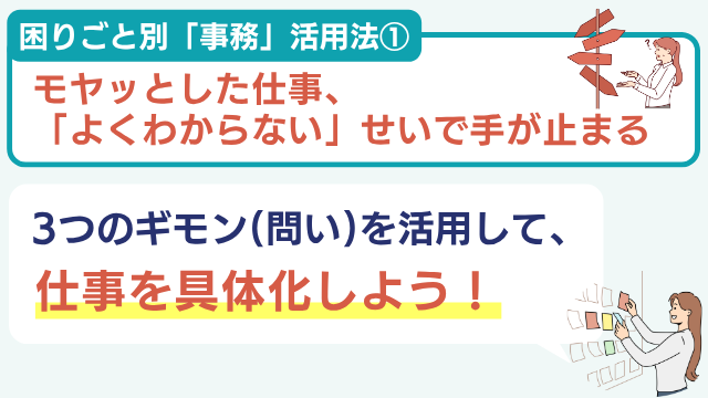 次の節からは、そんな「3つのギモン」をどのように活用していくのかを、困りごとの事例を挙げながら3つお伝えしていきます。