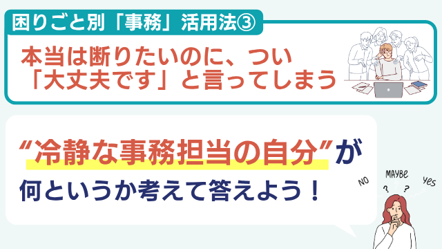 → 「事務が言ってるんで」と、“伝えるだけ”でよくなる