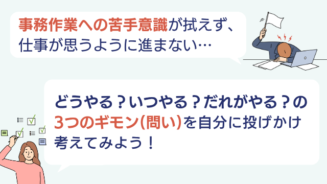 筆者も、かつてはその一人でした。 事務作業にどうしても苦手意識が拭えず、仕事が思うように進まない日々。休職を経て復職したあと、ようやくたどり着いたのが、「3つのギモン(問い)」を自分に投げかけるというシンプルな方法でした。