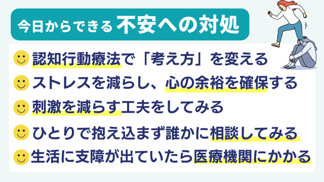 強い不安が長く続いたり、仕事や生活に影響がある場合、たとえば、