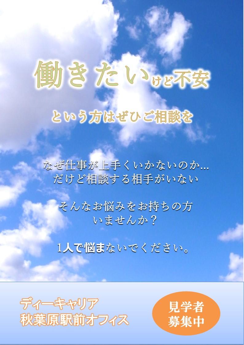【ディーキャリア秋葉原駅前オフィス】4月19日(土)開催「「働きたいけど不安」という方はぜひご相談を」