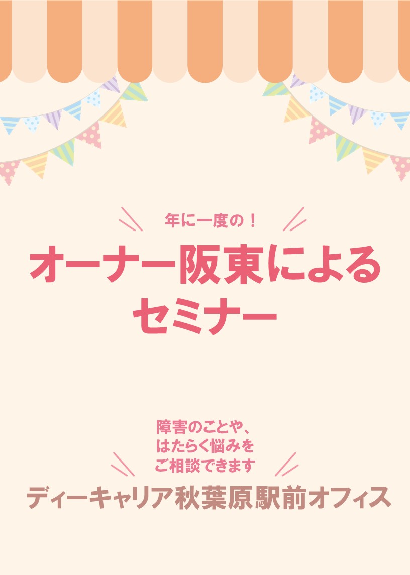 【ディーキャリア秋葉原駅前オフィス】9月20日(土)開催「オーナー阪東によるセミナー」