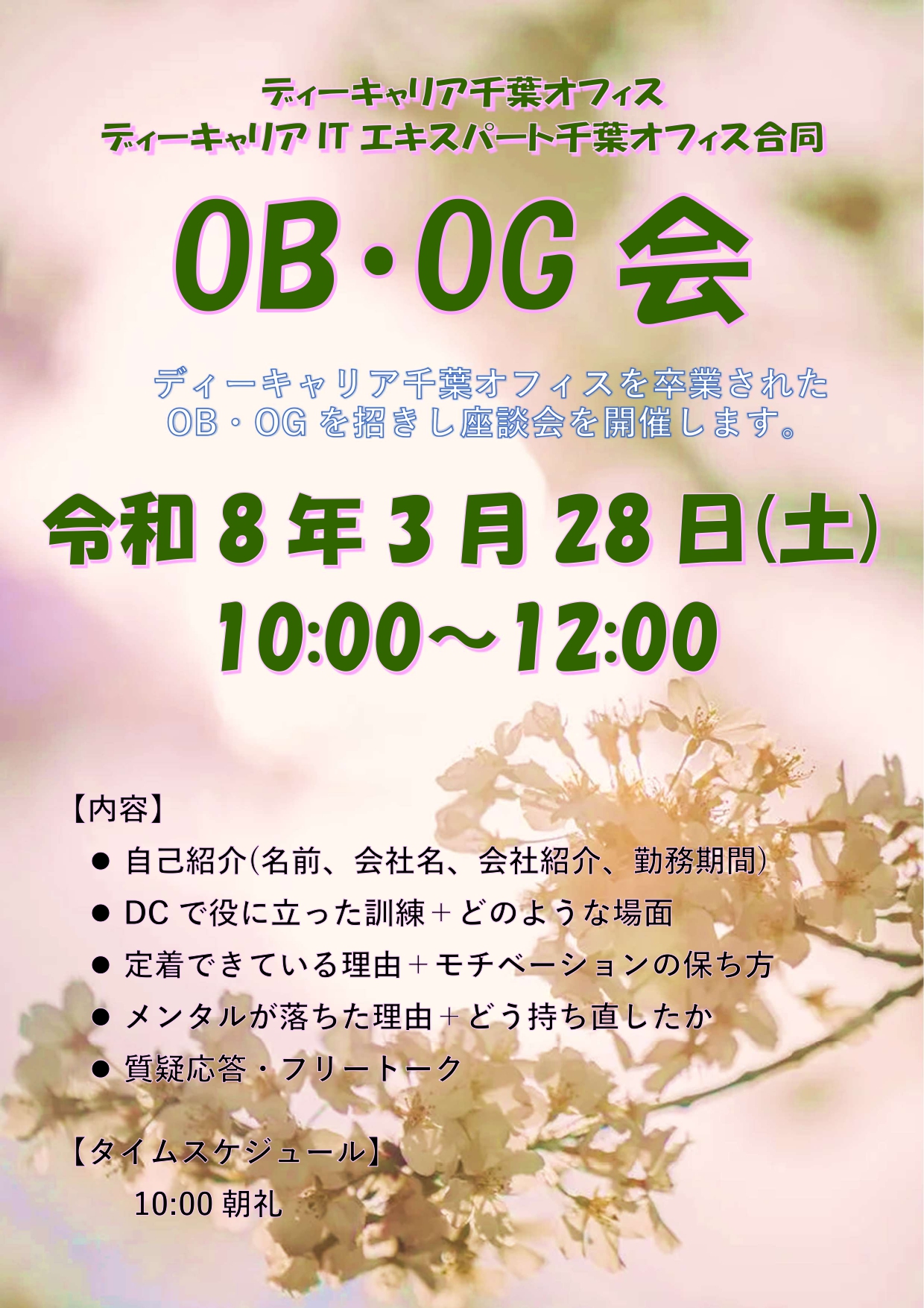【ディーキャリア千葉オフィス】3月28日(土)「OB・OG座談会」