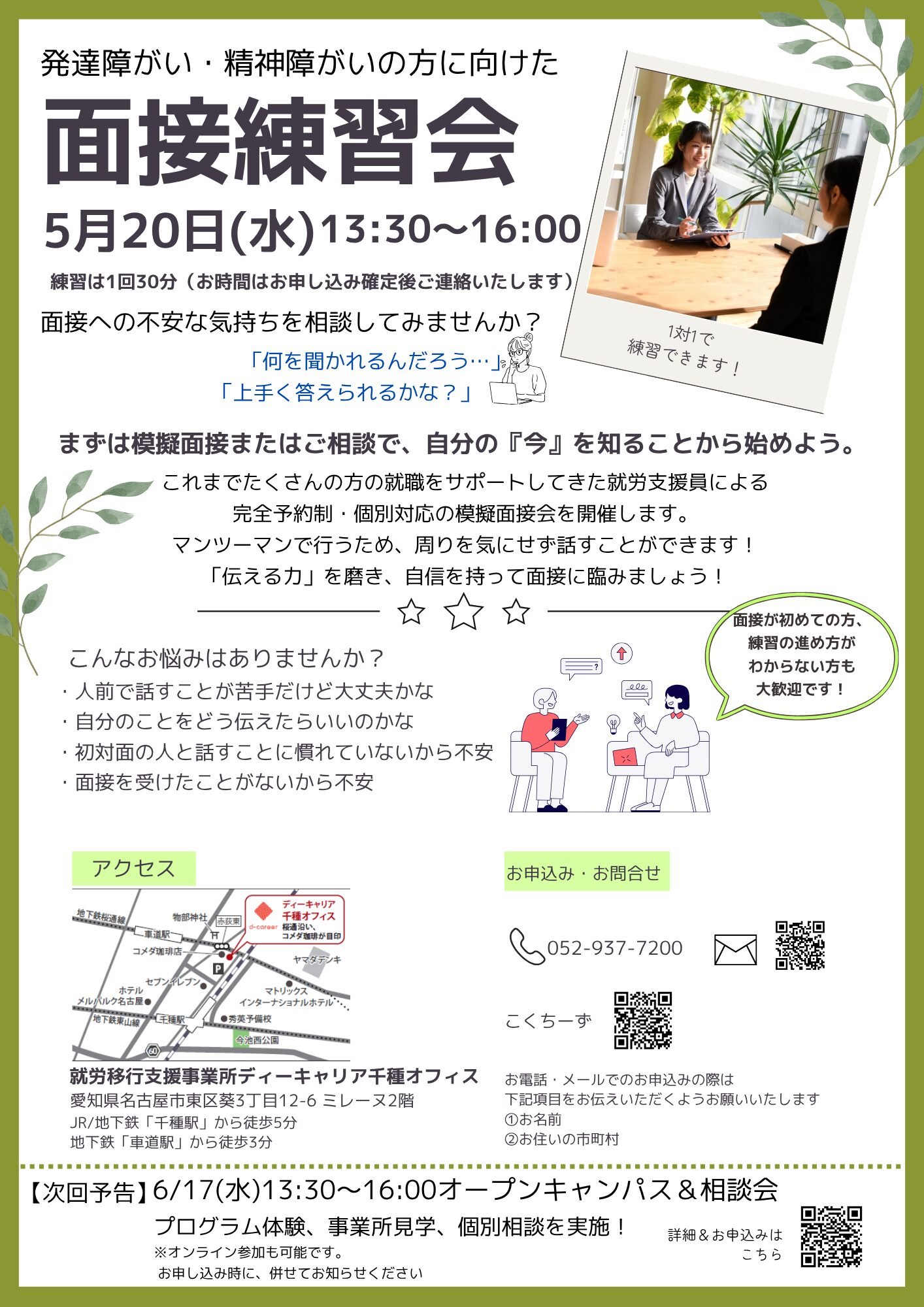 【ディーキャリア千種オフィス】05月20日(水)「就職への一歩!面接練習会」