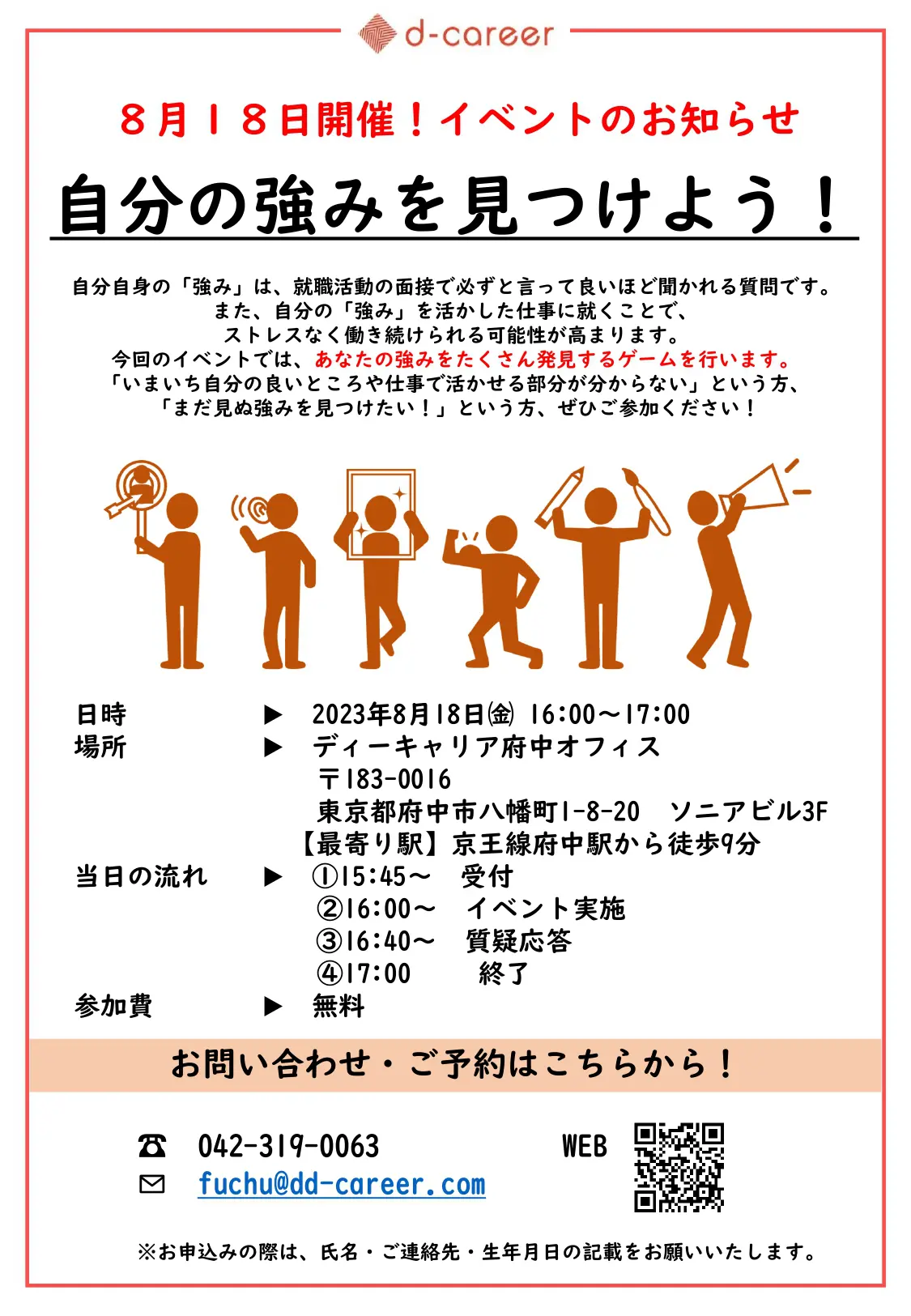 【ディーキャリア府中オフィス】8月18日(金)開催!「自分の強みを見つけよう!」