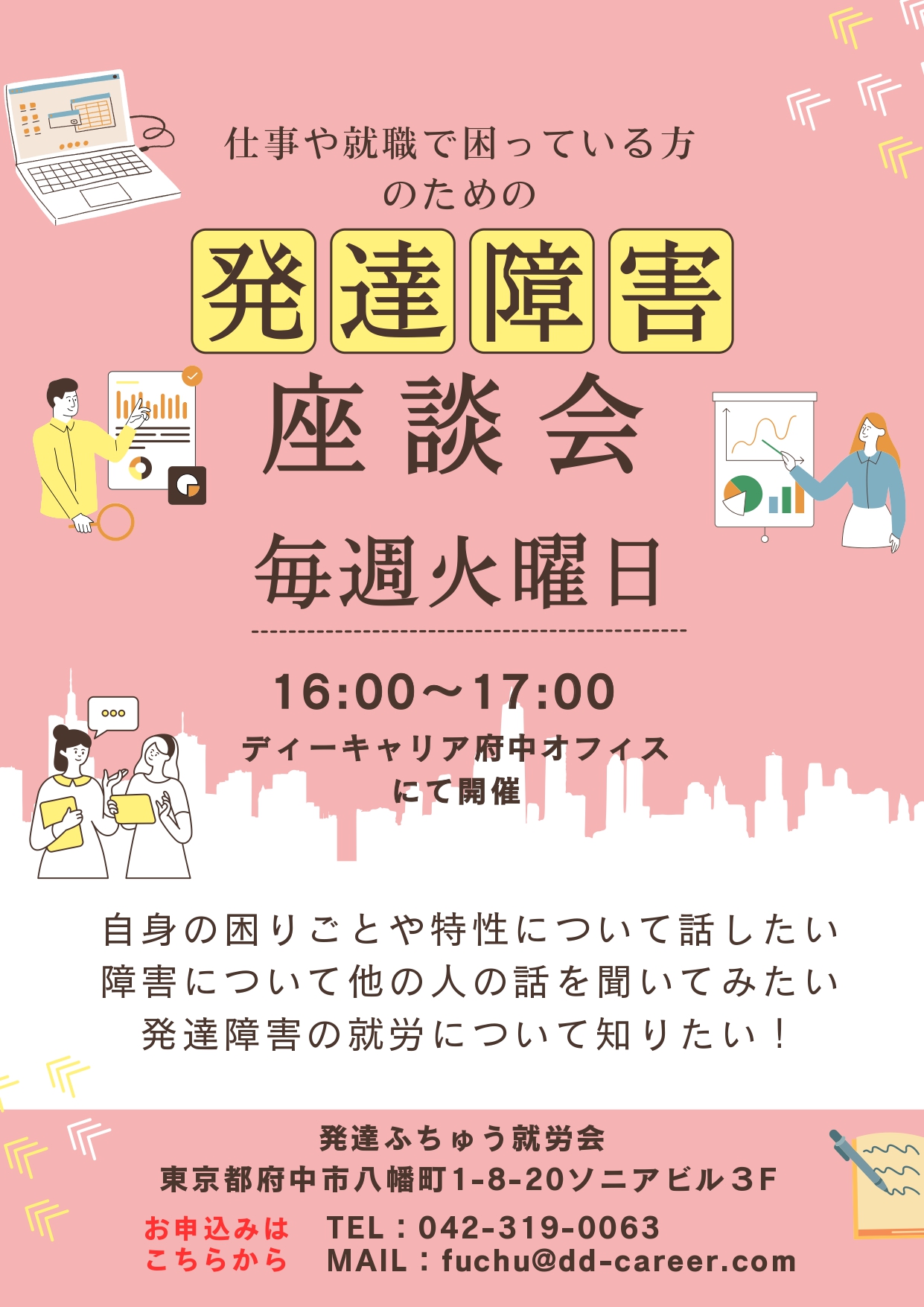 【ディーキャリア府中オフィス】12月毎週火曜日開催「発達障害座談会」