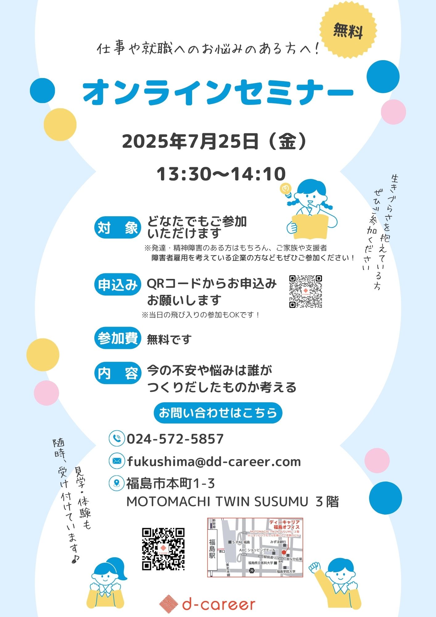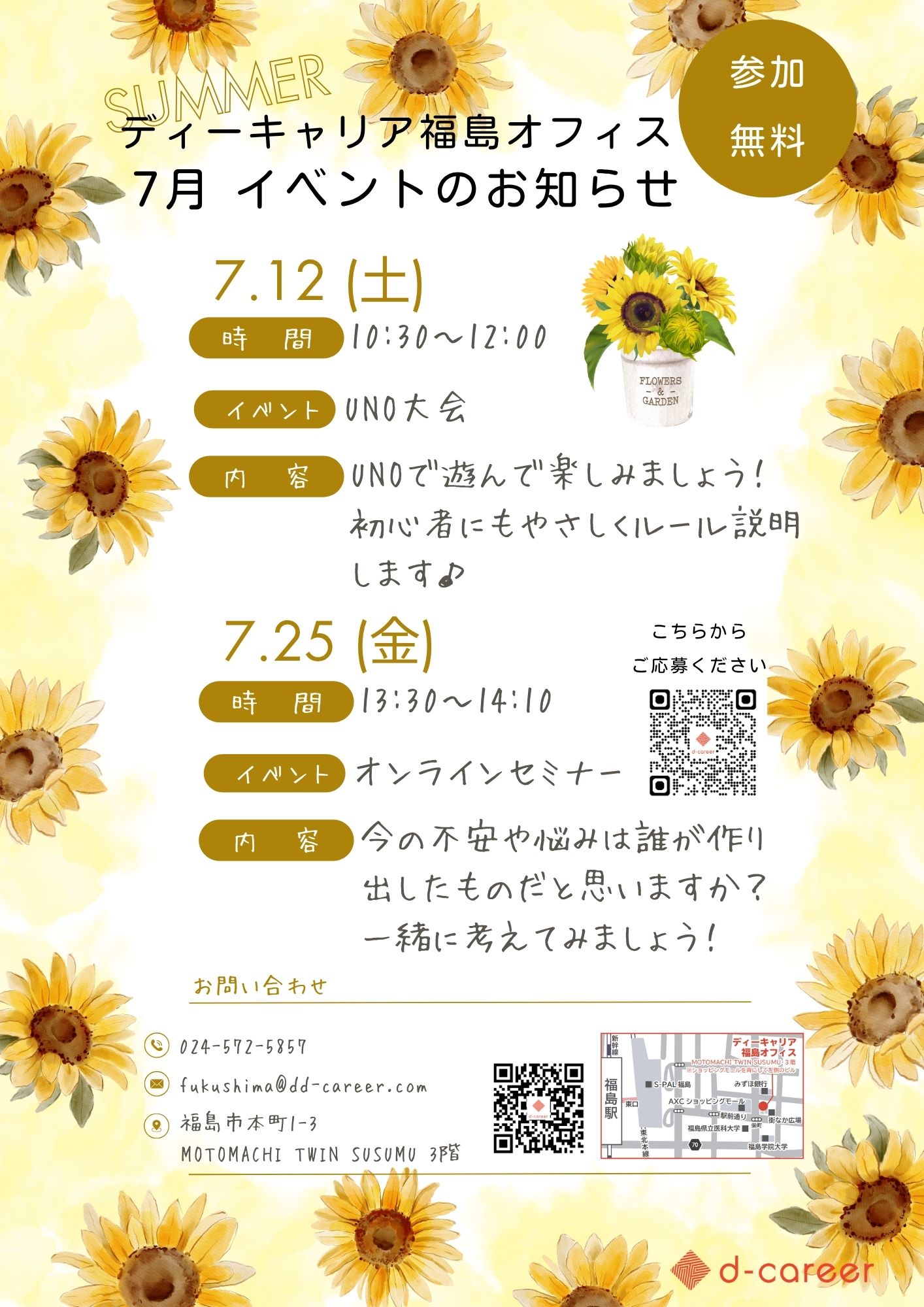 【ディーキャリア福島オフィス】7月12日(土)・25日(金)「障害を抱えていても関係ない!楽しいことも、就職の学びもココで体験しましょう♬」