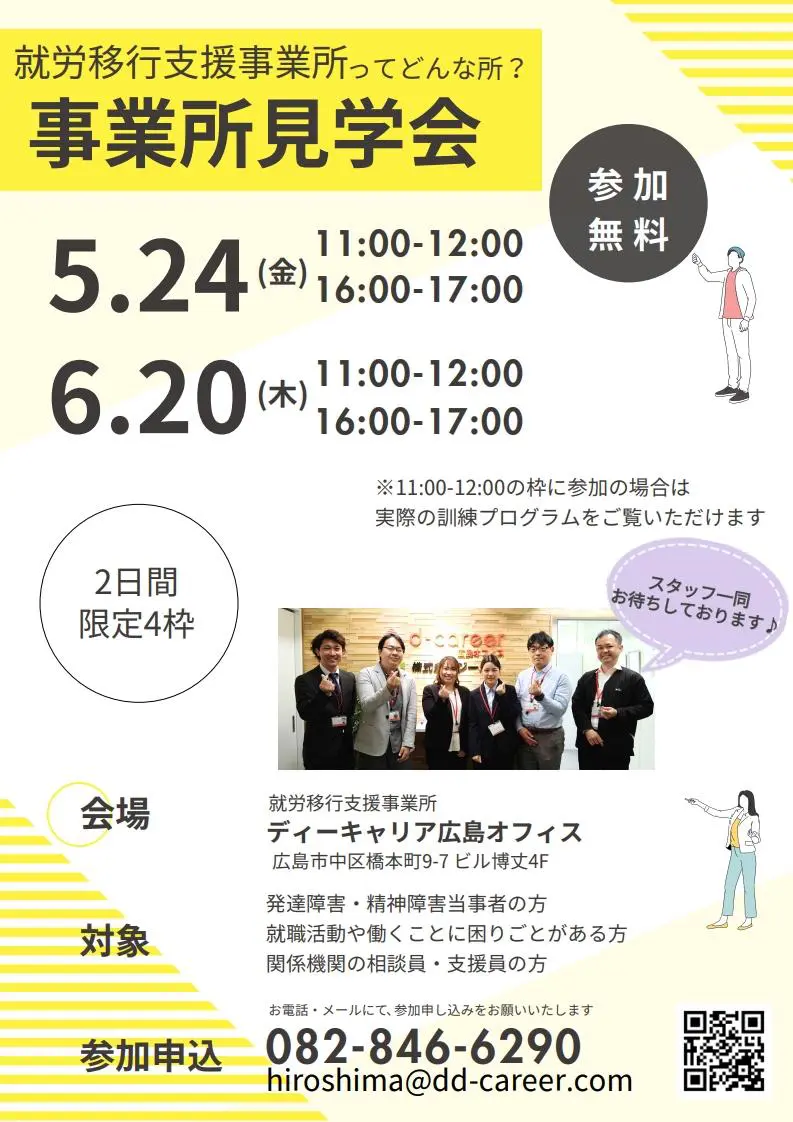 【ディーキャリア広島オフィス】5月24日(金)、6月20日(木)「就労移行支援事業所ってどんな所?事業所見学会」