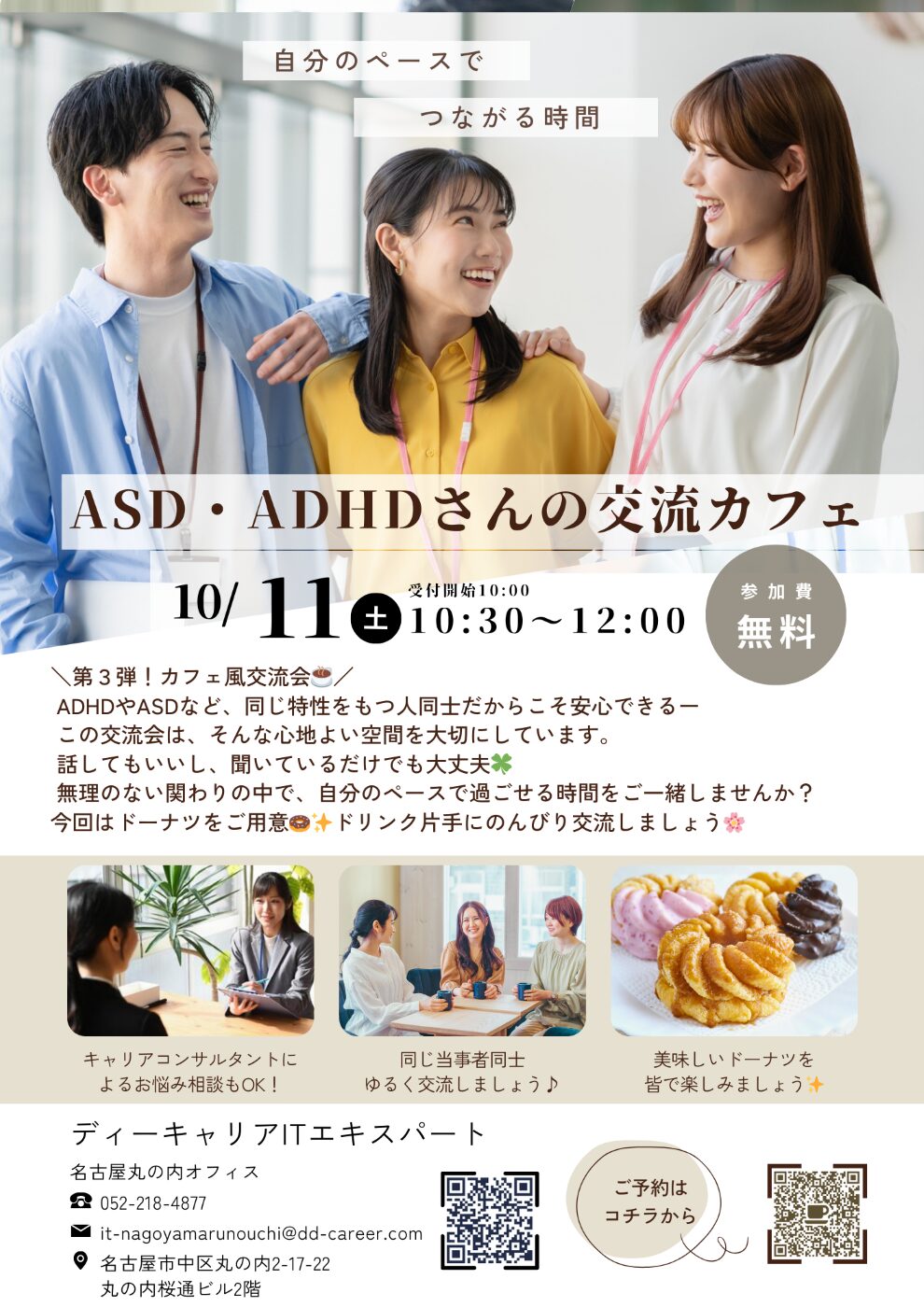 【ディーキャリアITエキスパート久屋大通オフィス】10月11日(土)「ASD・ADHDさんの交流カフェ」