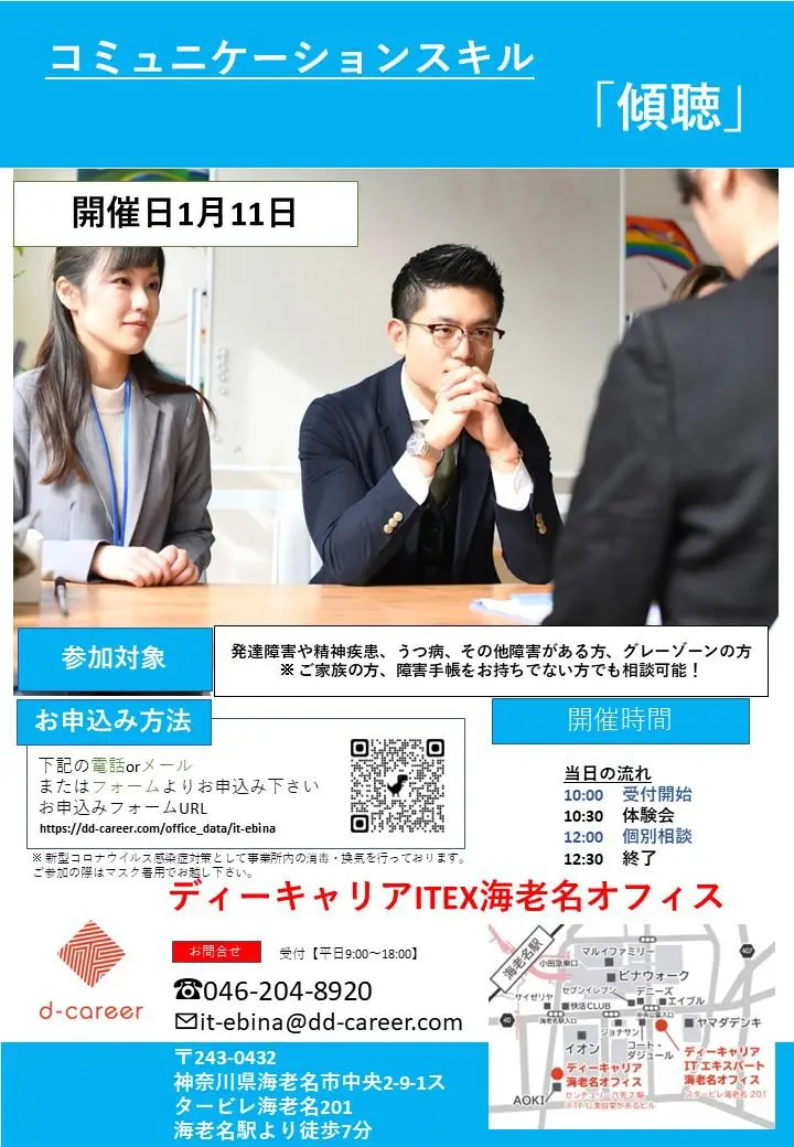 【ディーキャリアITエキスパート海老名オフィス】2023年1月11日(水)「傾聴」