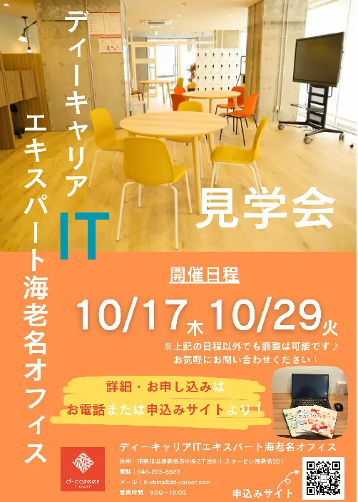 【ディーキャリアITエキスパート海老名オフィス】10月17日(木)・10月29日(火)「オフィス見学会」