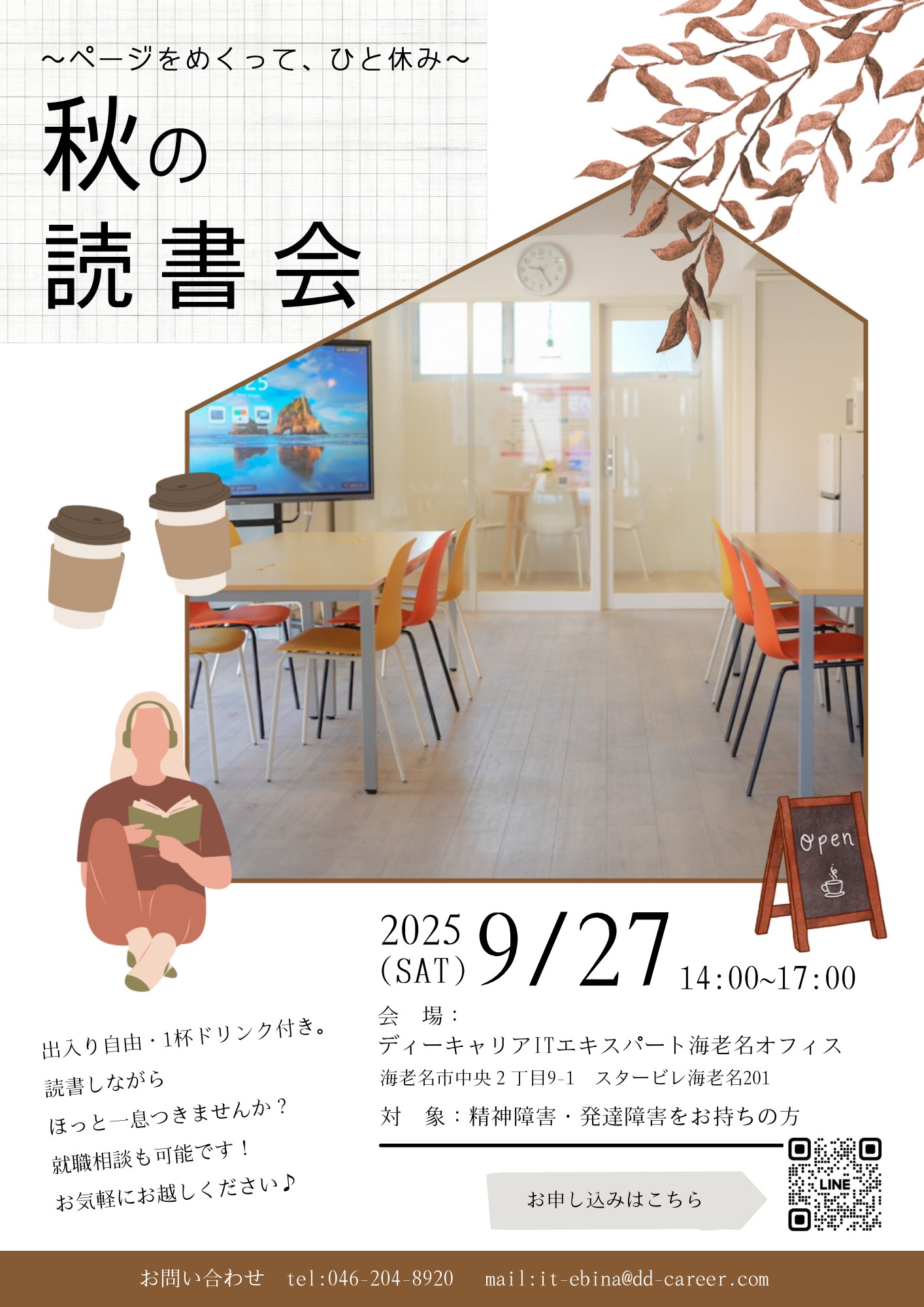 【ディーキャリアITエキスパート海老名オフィス】9月27日(土)「~ページをめくって、ひと休み~ 秋の読書会」