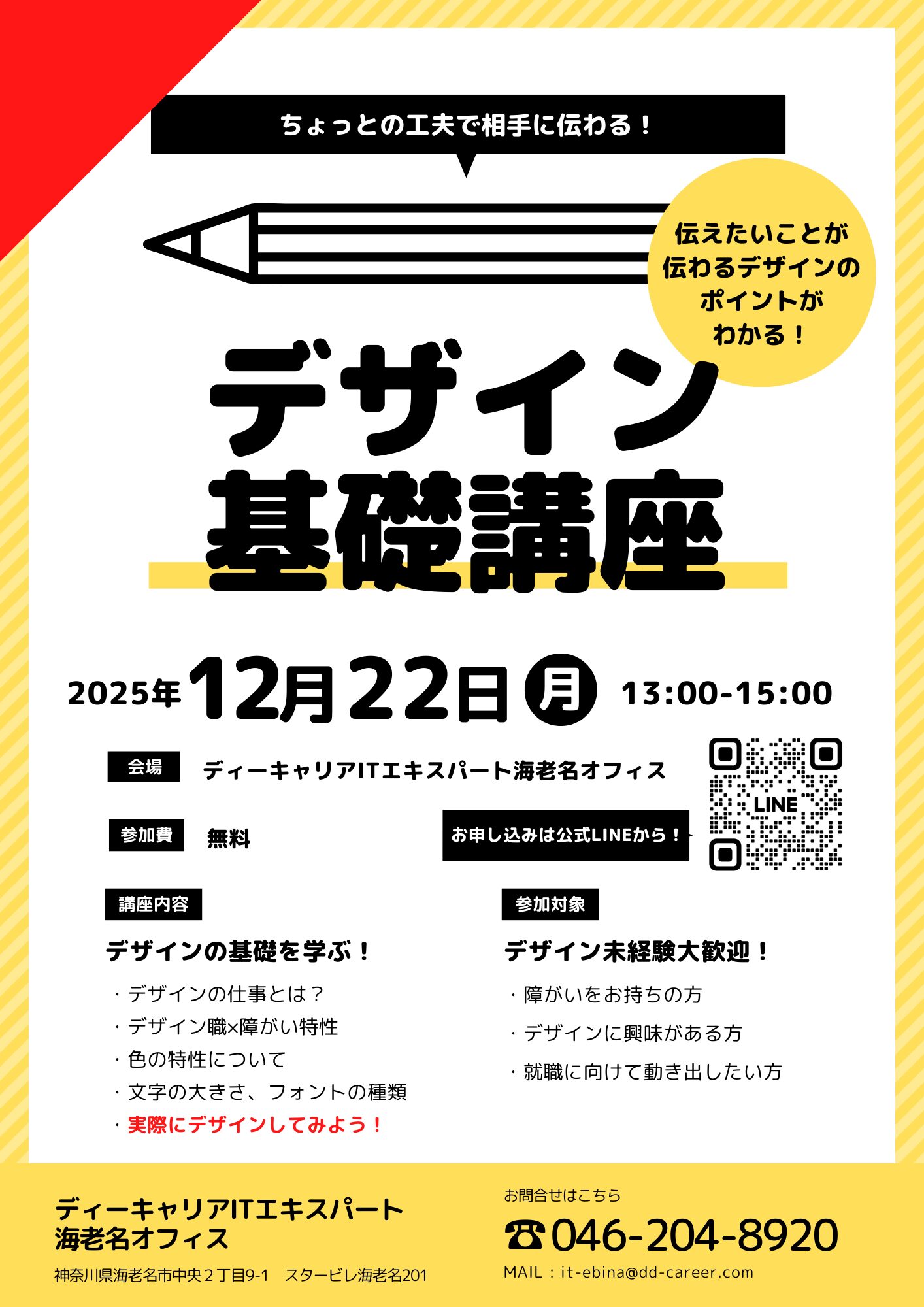 【ディーキャリアITエキスパート海老名オフィス】12月22日(月)「ちょっとの工夫で相手に伝わる!デザイン基礎講座」