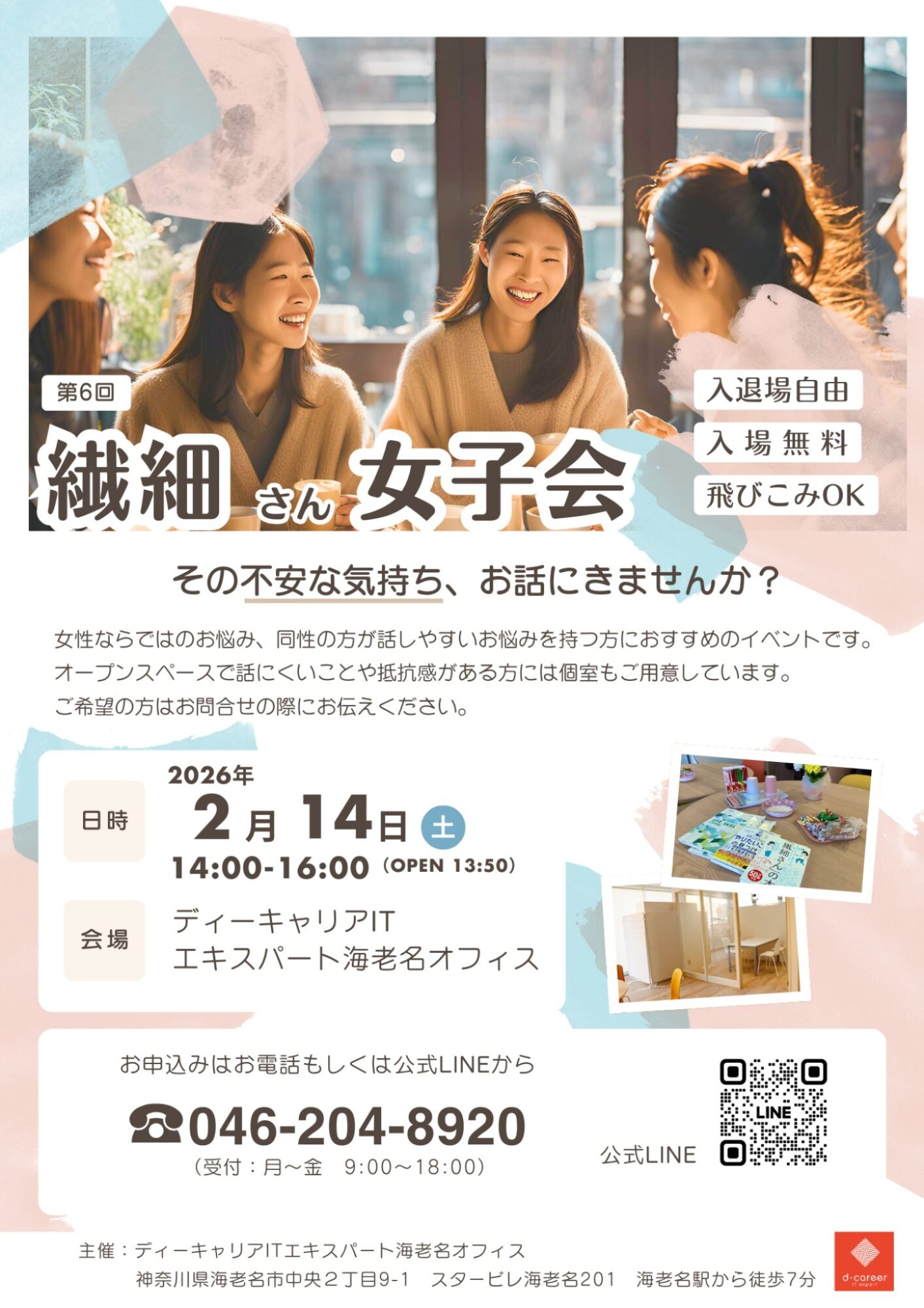 【ディーキャリアITエキスパート海老名オフィス】2月22日(土)「女性限定イベント 繊細さん女子会」