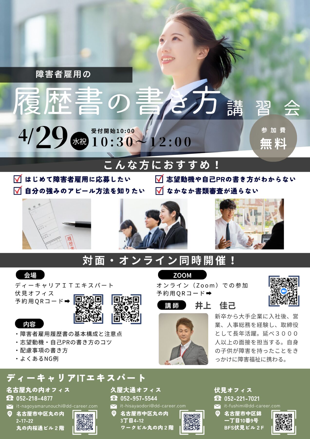 【ディーキャリアITエキスパート伏見オフィス】4月29日(水)「障害者雇用 履歴書の書き方」