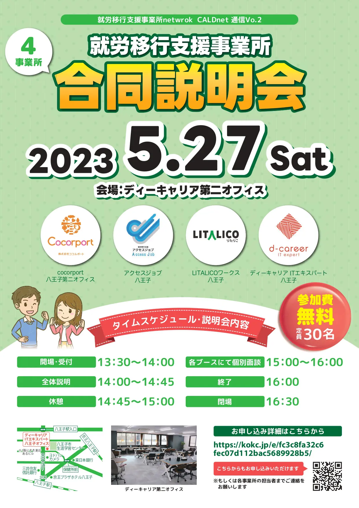 【ディーキャリアITエキスパート八王子オフィス・ITエキスパート八王子第二オフィス】5月27日(土)「就労移行支援事業所合同説明会」