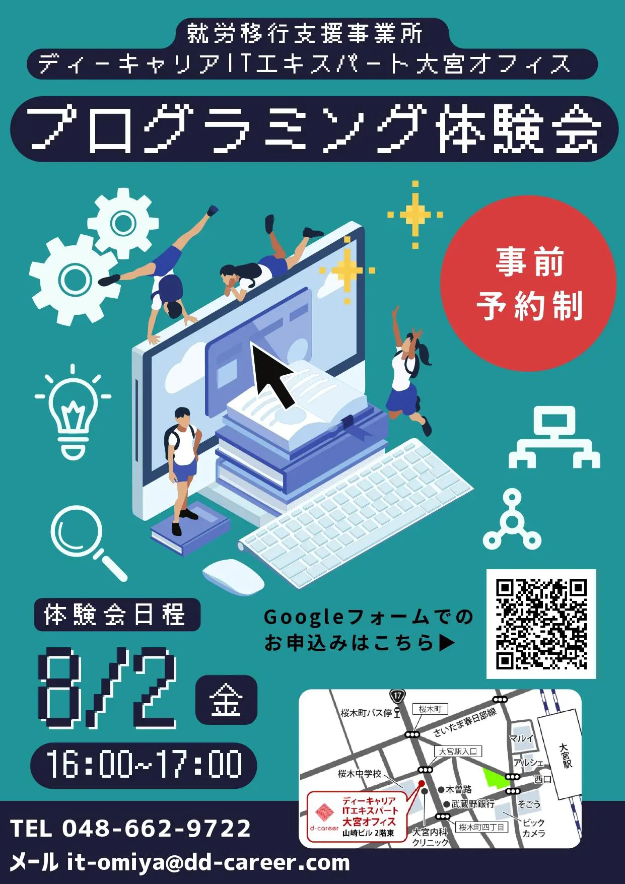 【ディーキャリアITエキスパート大宮オフィス】8月2日(金)「プログラミング体験会」
