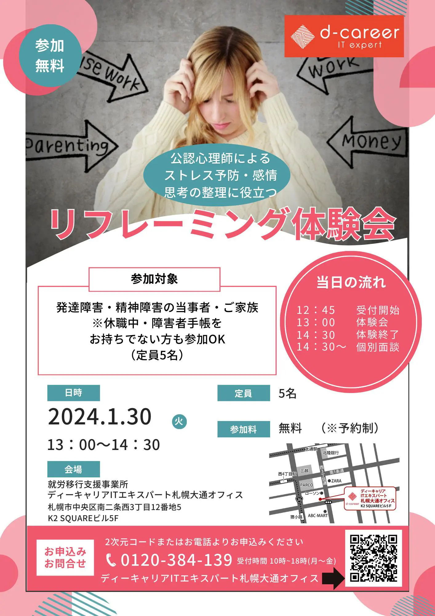 【ディーキャリアITエキスパート札幌大通オフィス 】01月30日(火)「リフレーミング体験会」