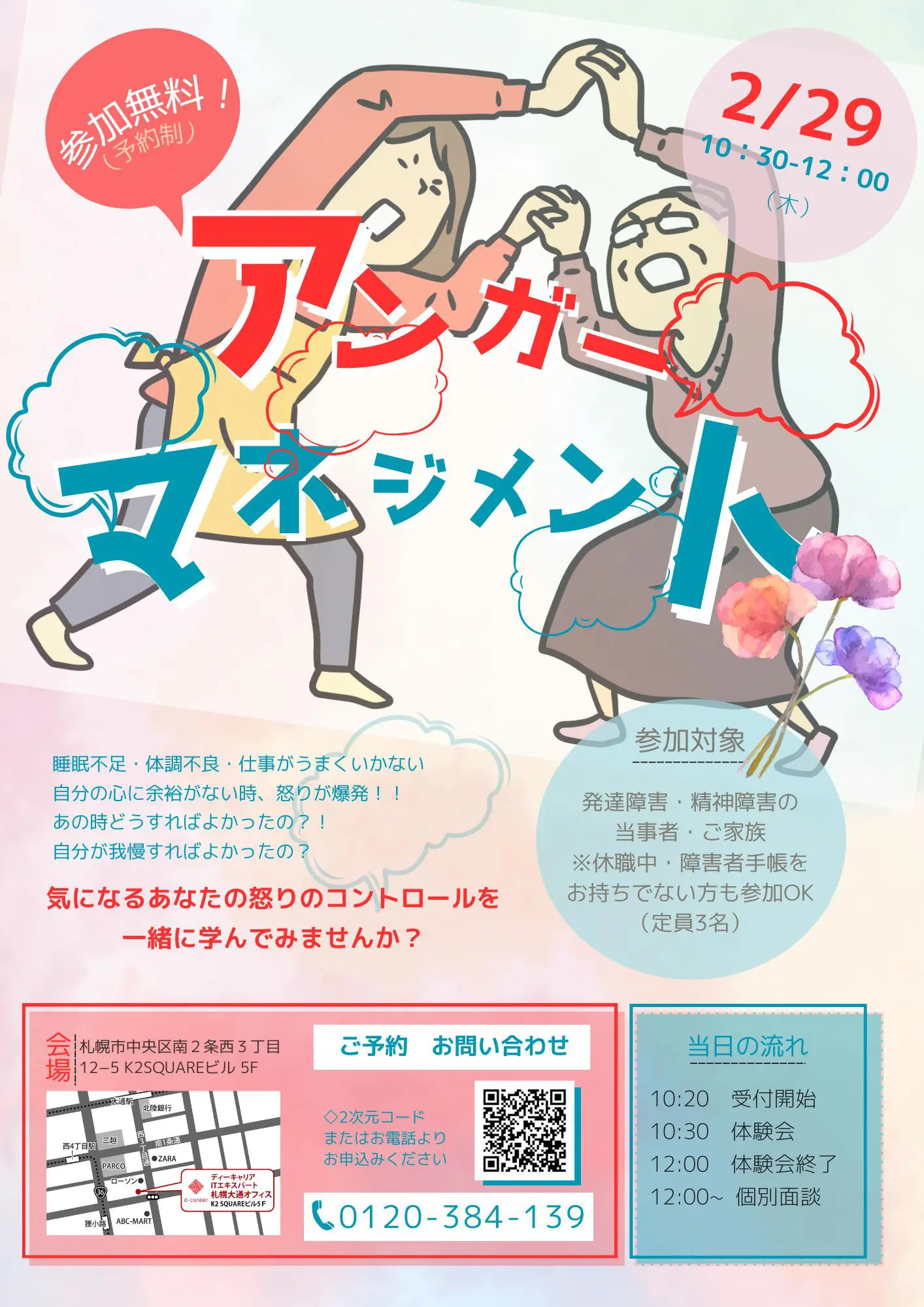 【ディーキャリアITエキスパート札幌大通オフィス 】02月29日(木)「アンガーマネージメント体験会」