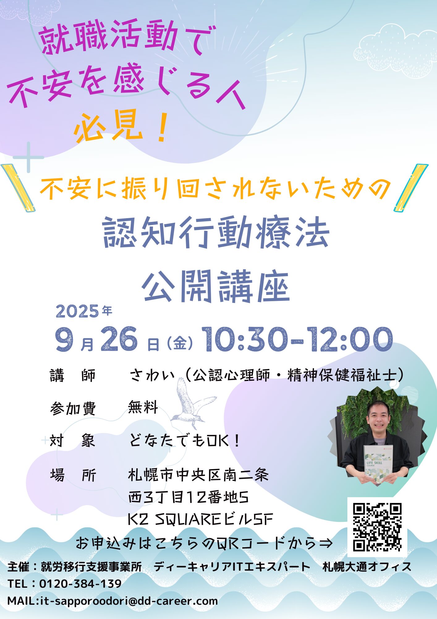【ディーキャリアITエキスパート札幌大通オフィス 】9月26日(金)「就職活動に不安を覚える方必見!公認心理師による『不安解消のための認知行動療法』講座!」