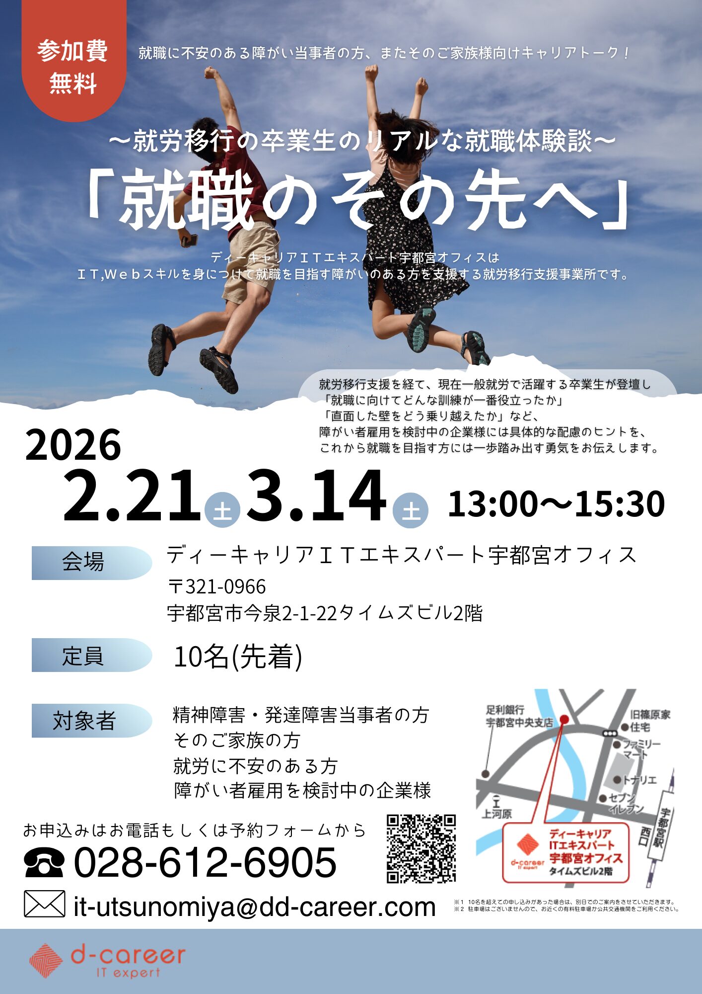 【ディーキャリアITエキスパート宇都宮オフィス】02月21日(土)・03月14日(土)「就労者講話会「就職のその先へ」」