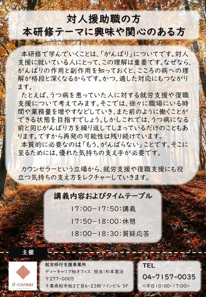 【ディーキャリア柏オフィス】2023年2月22日(水)「がんばらせない支援術」