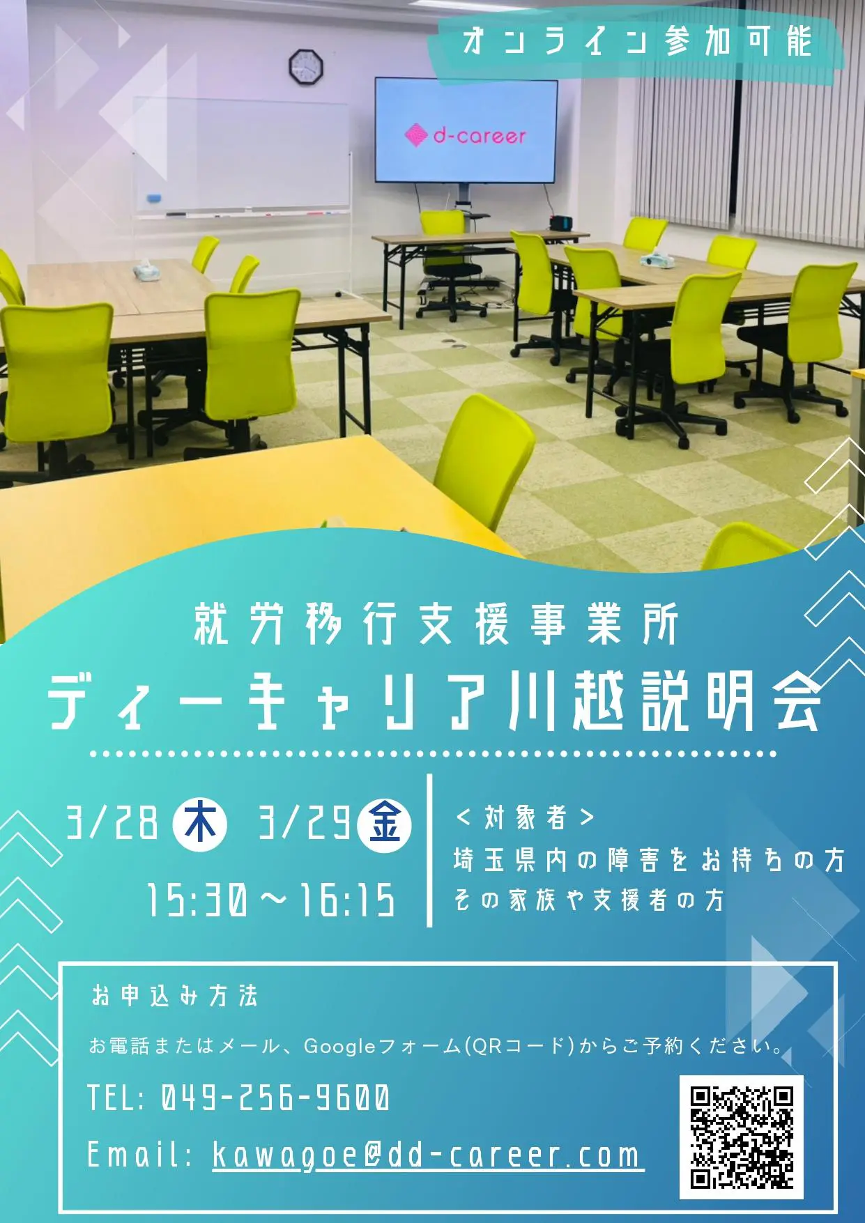 【ディーキャリア川越オフィス】2024年03月28日(木)・29日(金)「ディーキャリア川越説明会 ※オンライン参加可能」