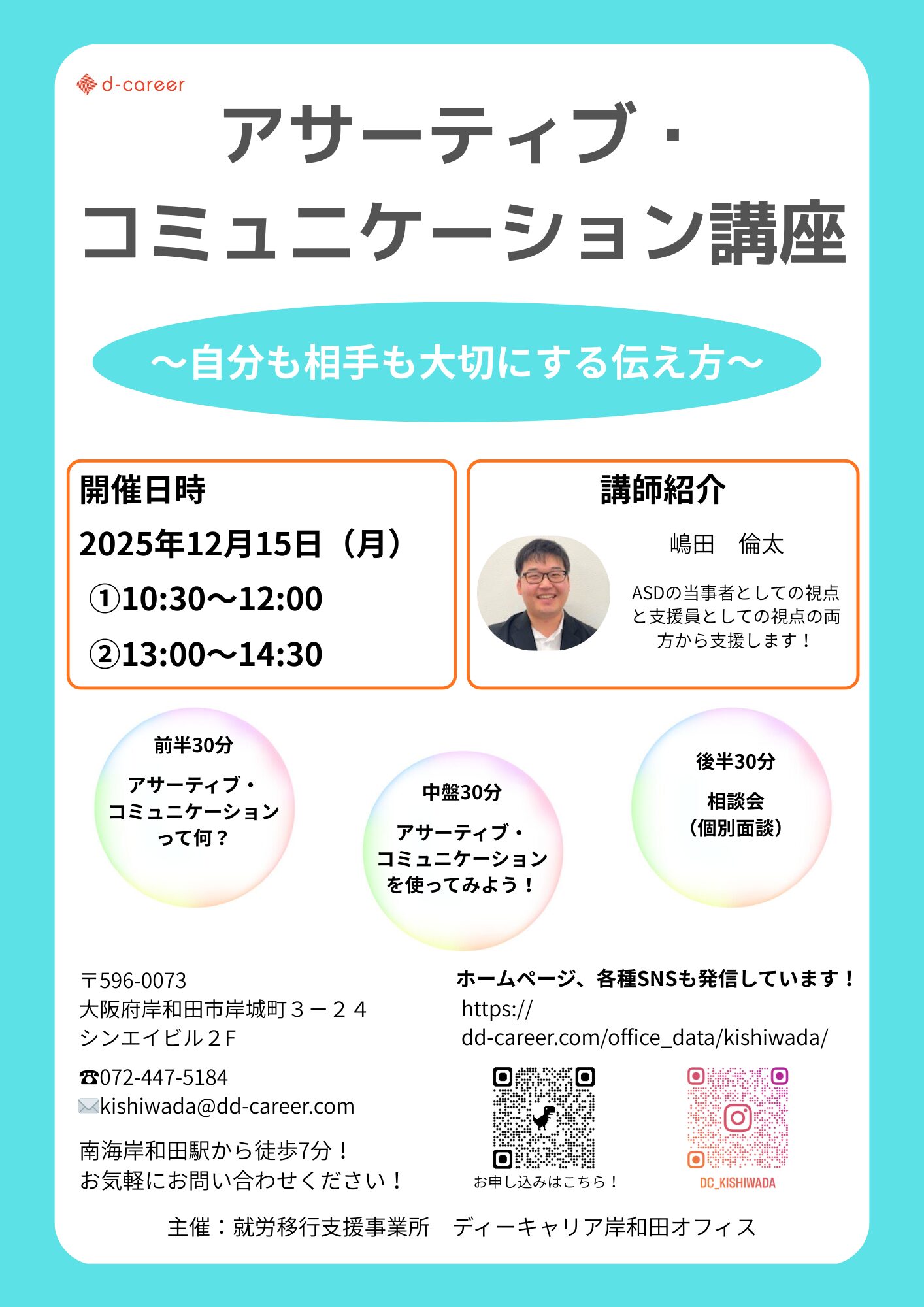 【ディーキャリア岸和田オフィス】12月15日(月)「アサーティブコミュニケーション~自分も相手も大切に~」