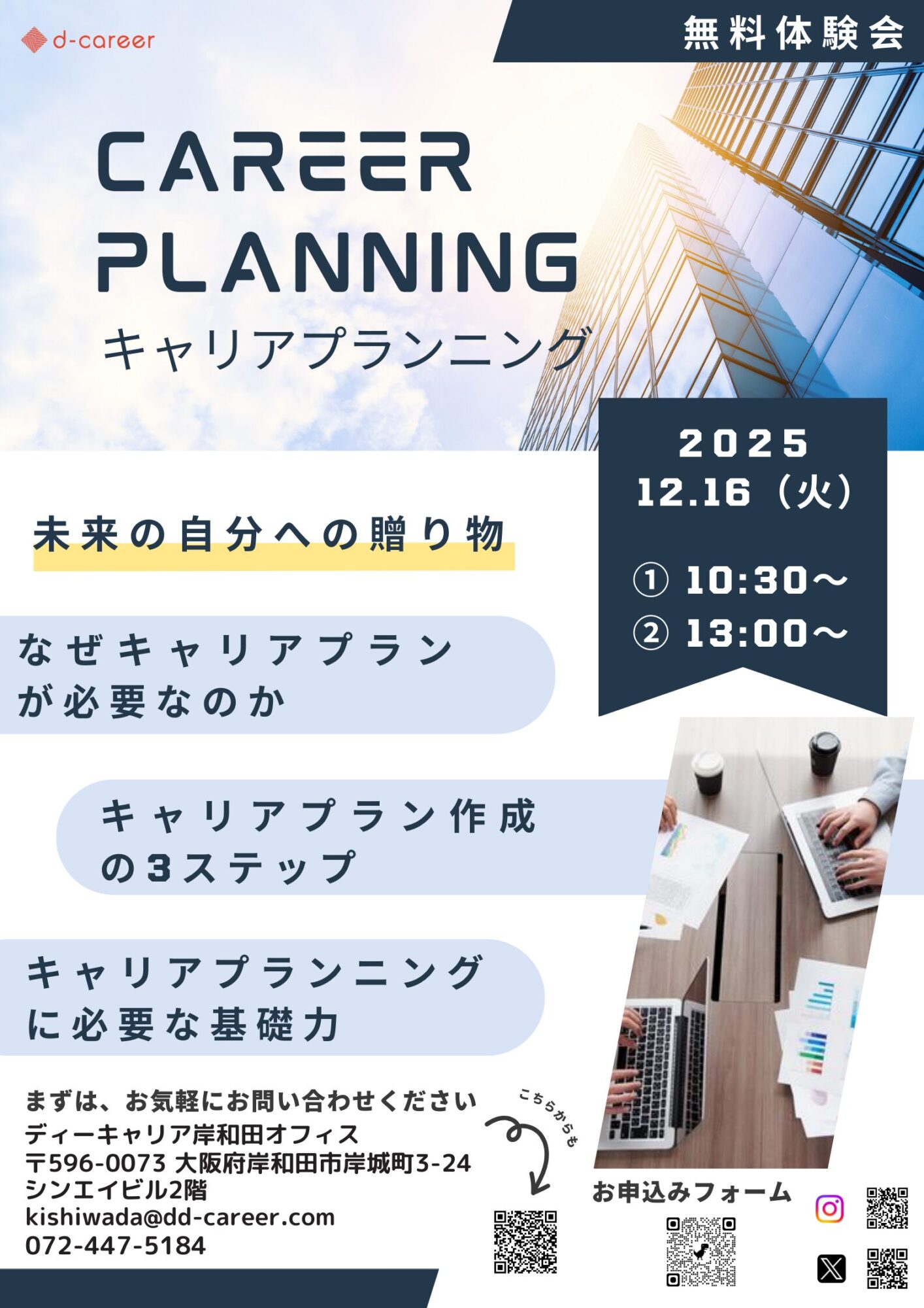 【ディーキャリア岸和田オフィス】12月16日(火)「キャリアプランニング~未来の自分への贈り物~」