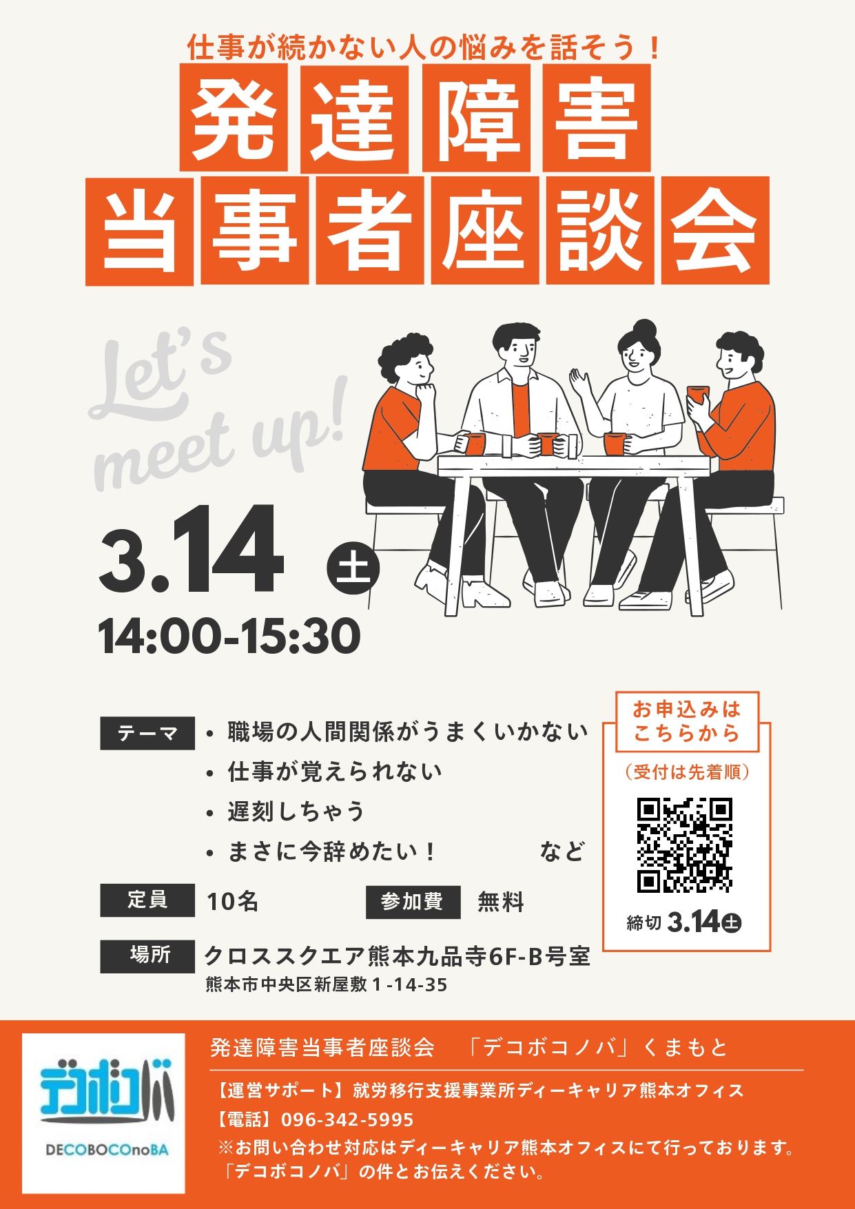 【ディーキャリア熊本オフィス】03月14日(土)「発達障害当事者座談会」