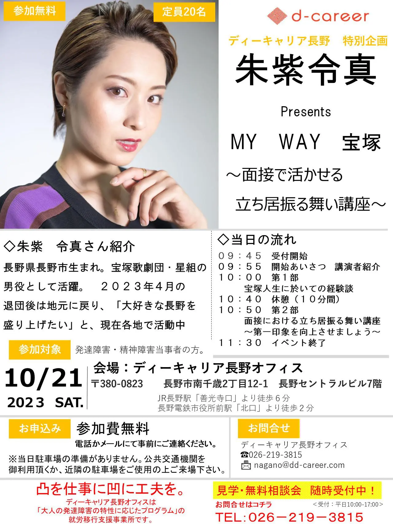 【ディーキャリア長野オフィス】10月21日(土)「MY WAY 宝塚~面接で活かせる立ち居振る舞い講座~」