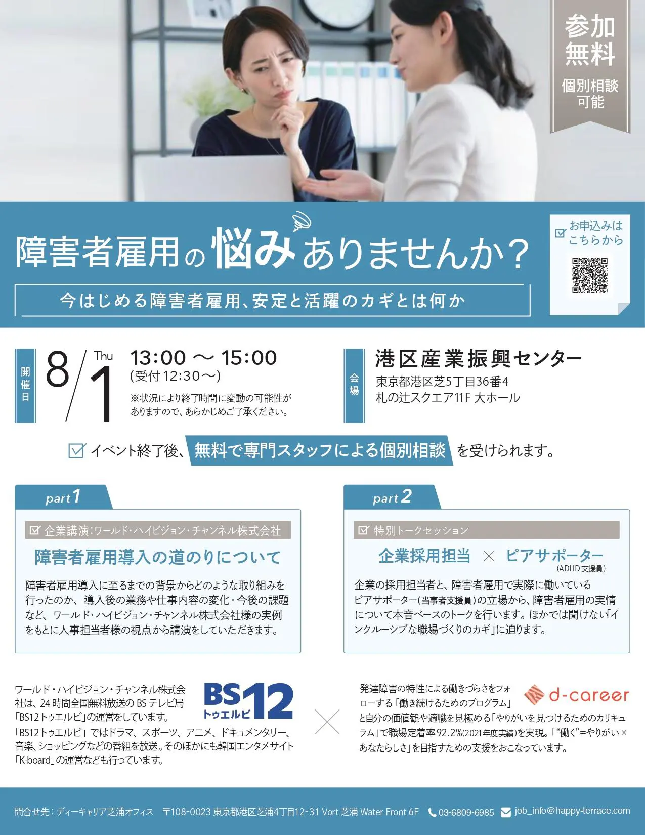 【ディーキャリアITエキスパート中野オフィス】08月01日(木)開催「障害者雇用の悩みありませんか?~今はじめる障害者雇用、安定と活躍のカギとはなにか~」