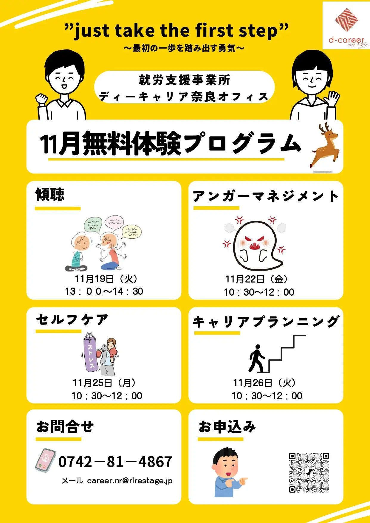 【ディーキャリア奈良オフィス】11月19日(火)・22日(金)・25日(月)・26日(火)「無料体験会」