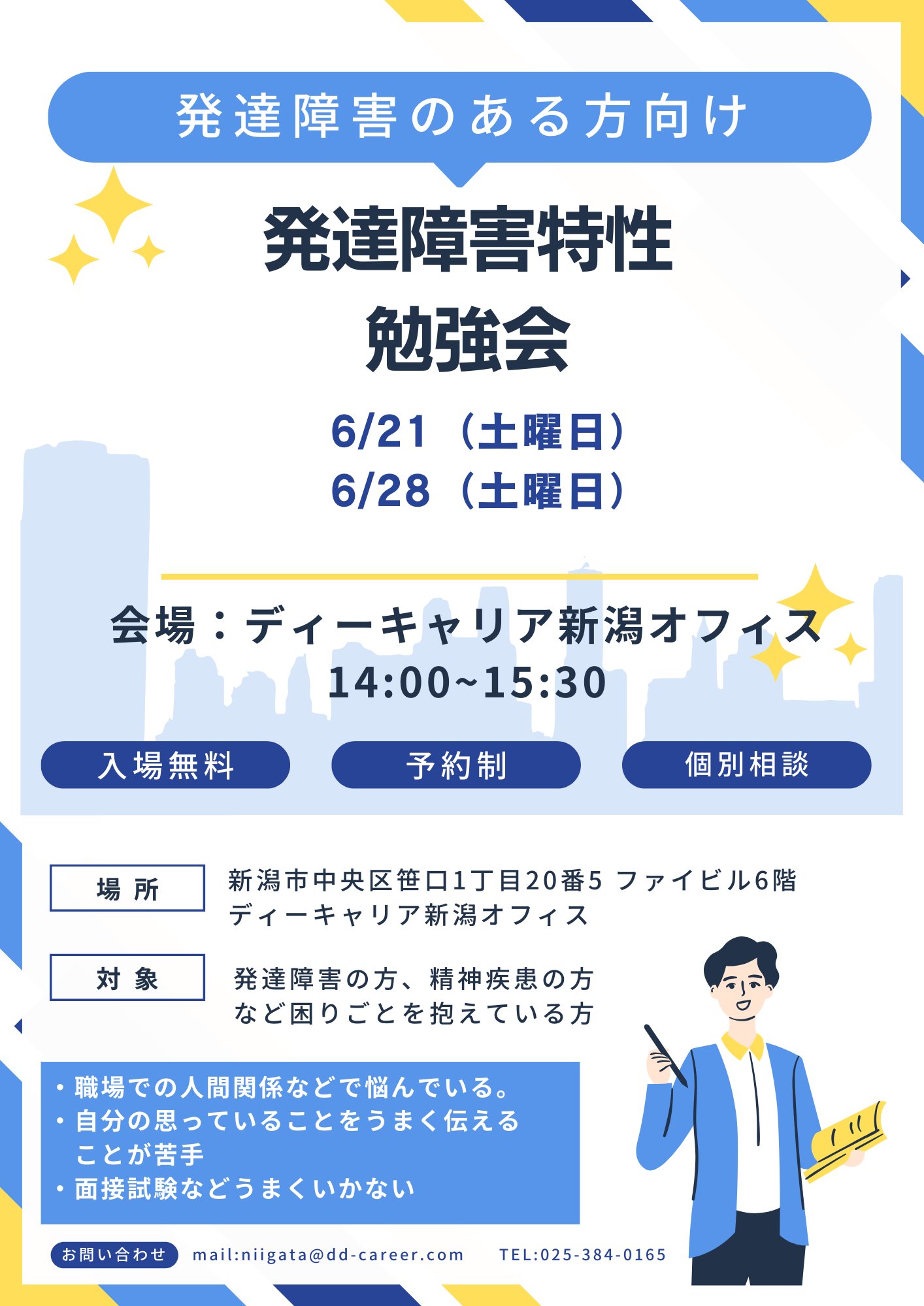 【ディーキャリア新潟オフィス】6月28日(土)「発達障害勉強会(セルフマネジメント)」