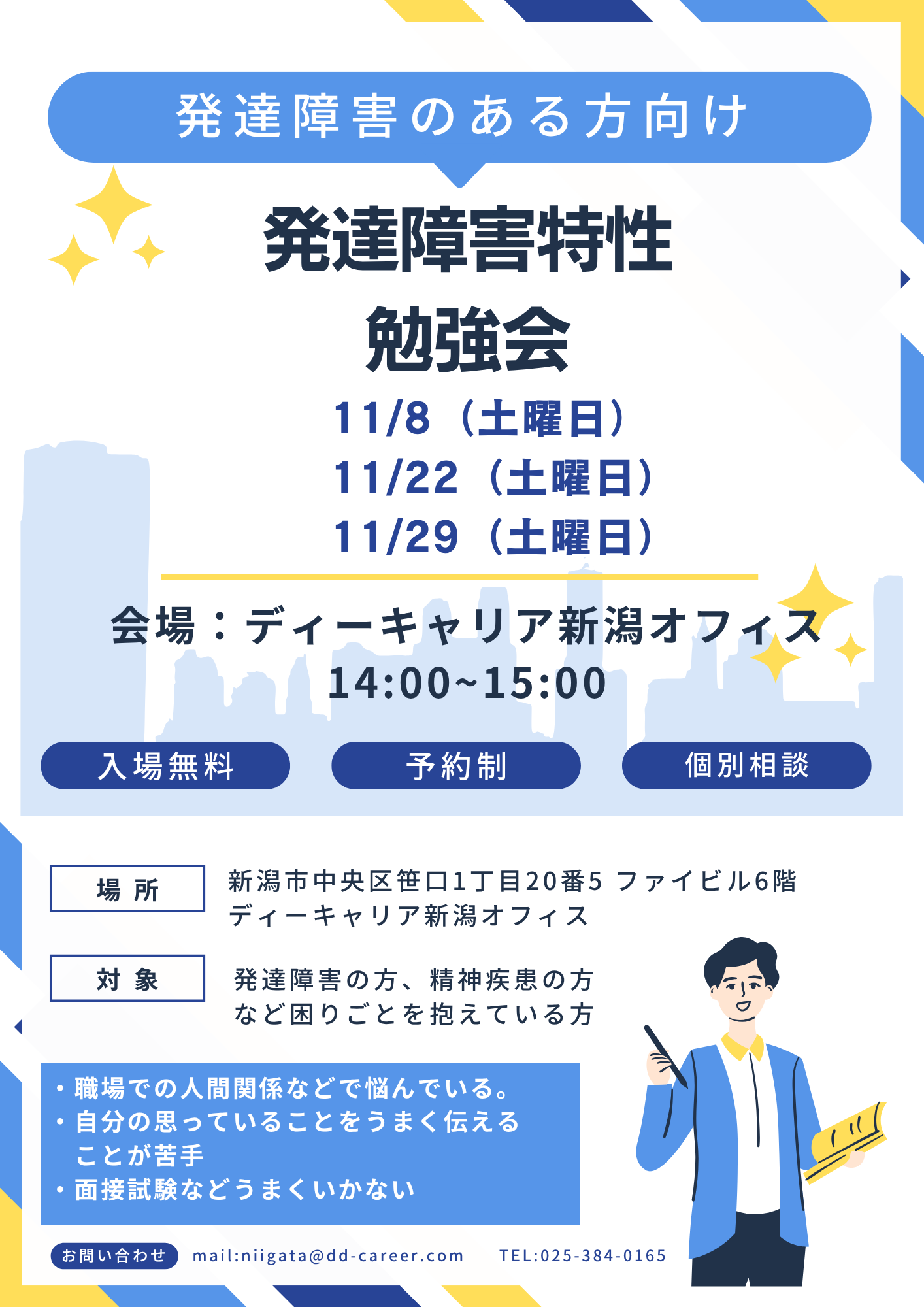 【ディーキャリア新潟オフィス】11月29日(土)「『発達障害の方・障害のある方のための就労相談会』」
