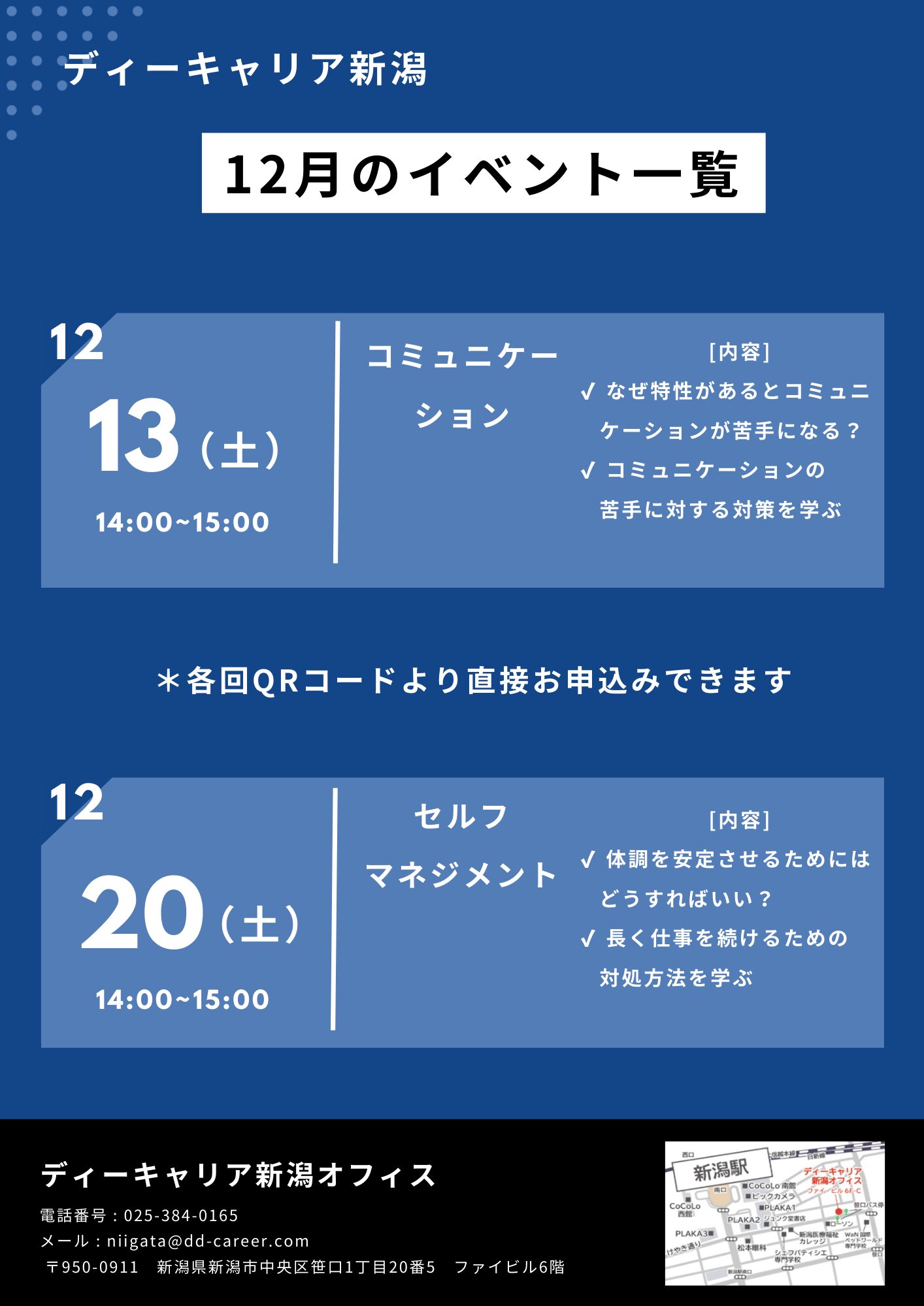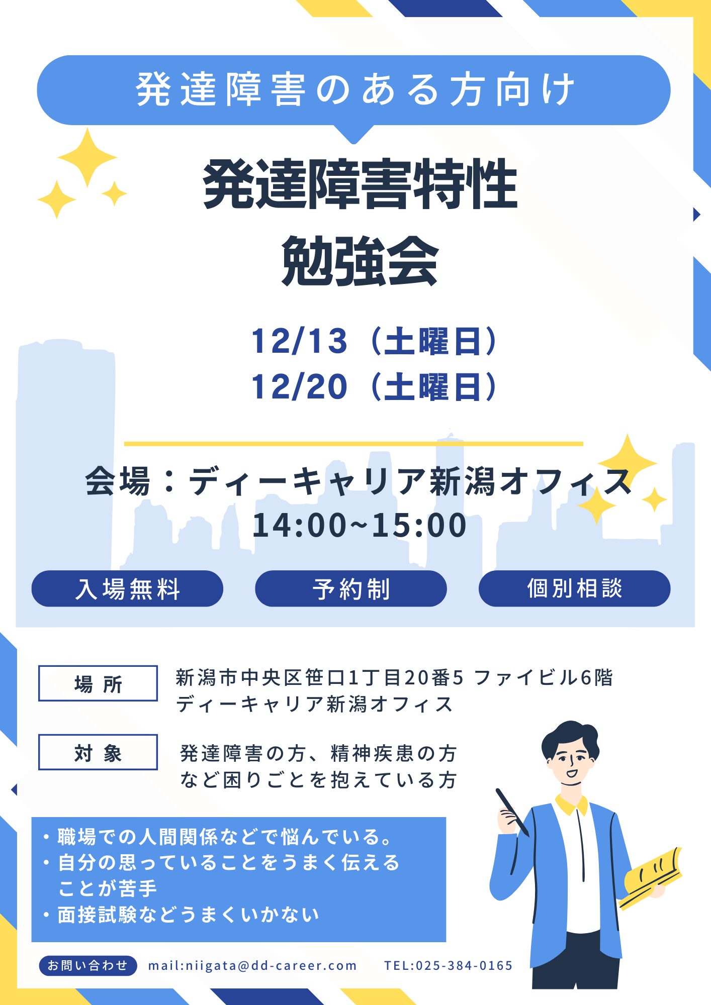 【ディーキャリア新潟オフィス】12月13日(土)「『発達障害の方・障害のある方のための就労相談会』」