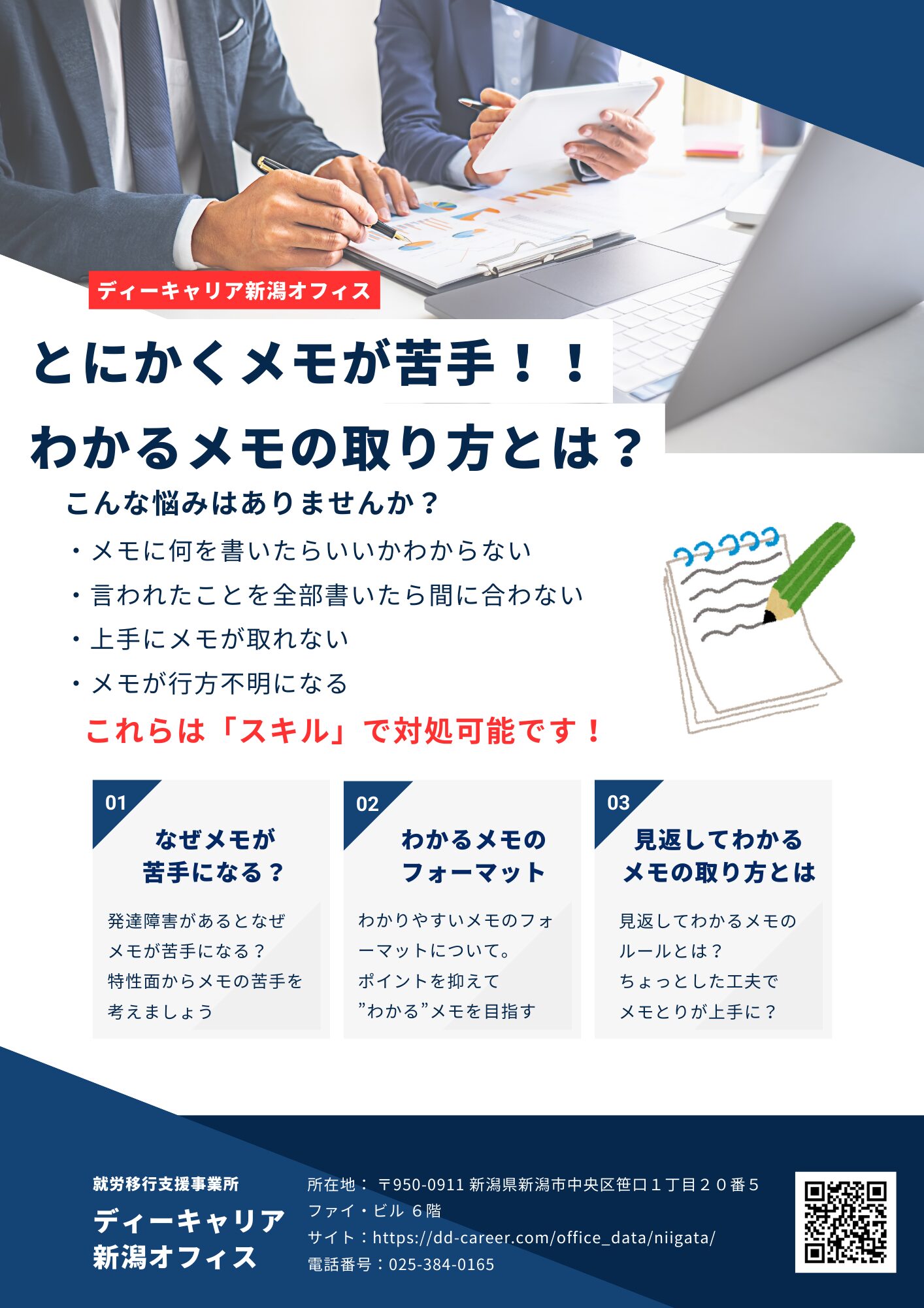 【ディーキャリア新潟オフィス】02月14日(土)「【発達障害】見返してわかるメモの取り方とは?」
