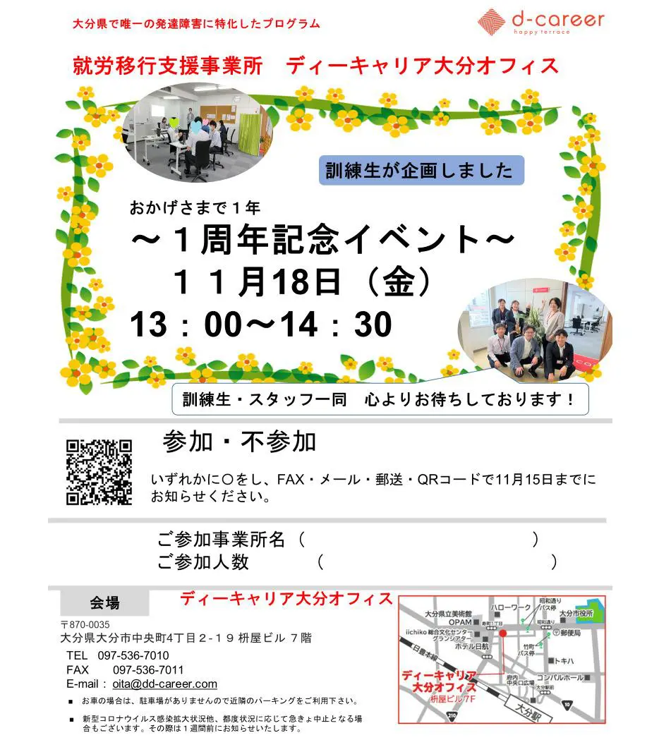 【ディーキャリア大分オフィス】11月18日(金)「おかげさまで1年 ~1周年記念イベント~」