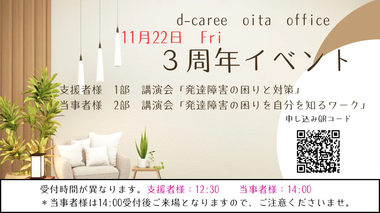 【ディーキャリア大分オフィス】11月22日(金)「3周年イベント」