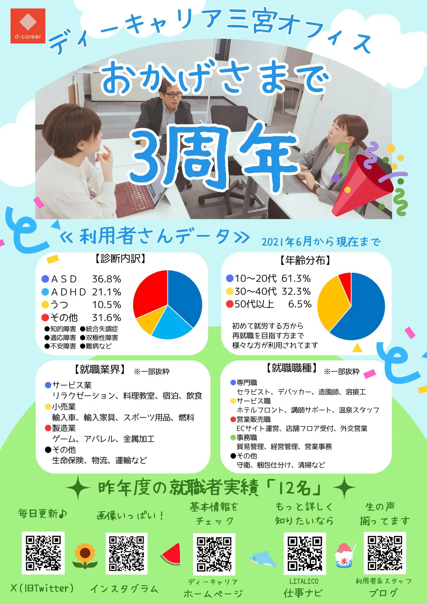 今回のイベントを担当させて頂きます「就労移行支援事業所 ディーキャリア三宮オフィス」の管理者です!