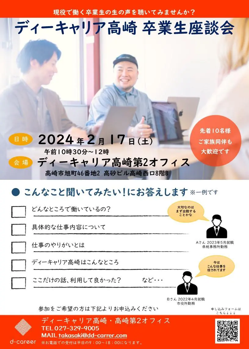 【ディーキャリア高崎第2オフィス】2月17日(土)「卒業生座談会」