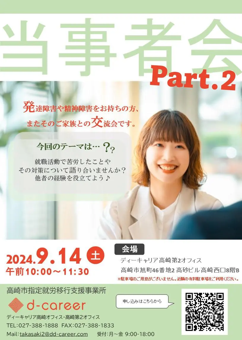 【ディーキャリア高崎第2オフィス】9月14日(土)「凸凹交流会~発達・精神障害者向け当事者会~」