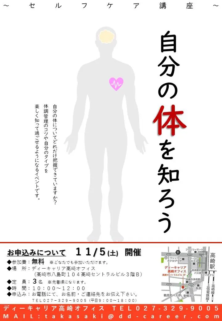 【ディーキャリア高崎オフィス】11月5日(土)「自分の体を知ろう」