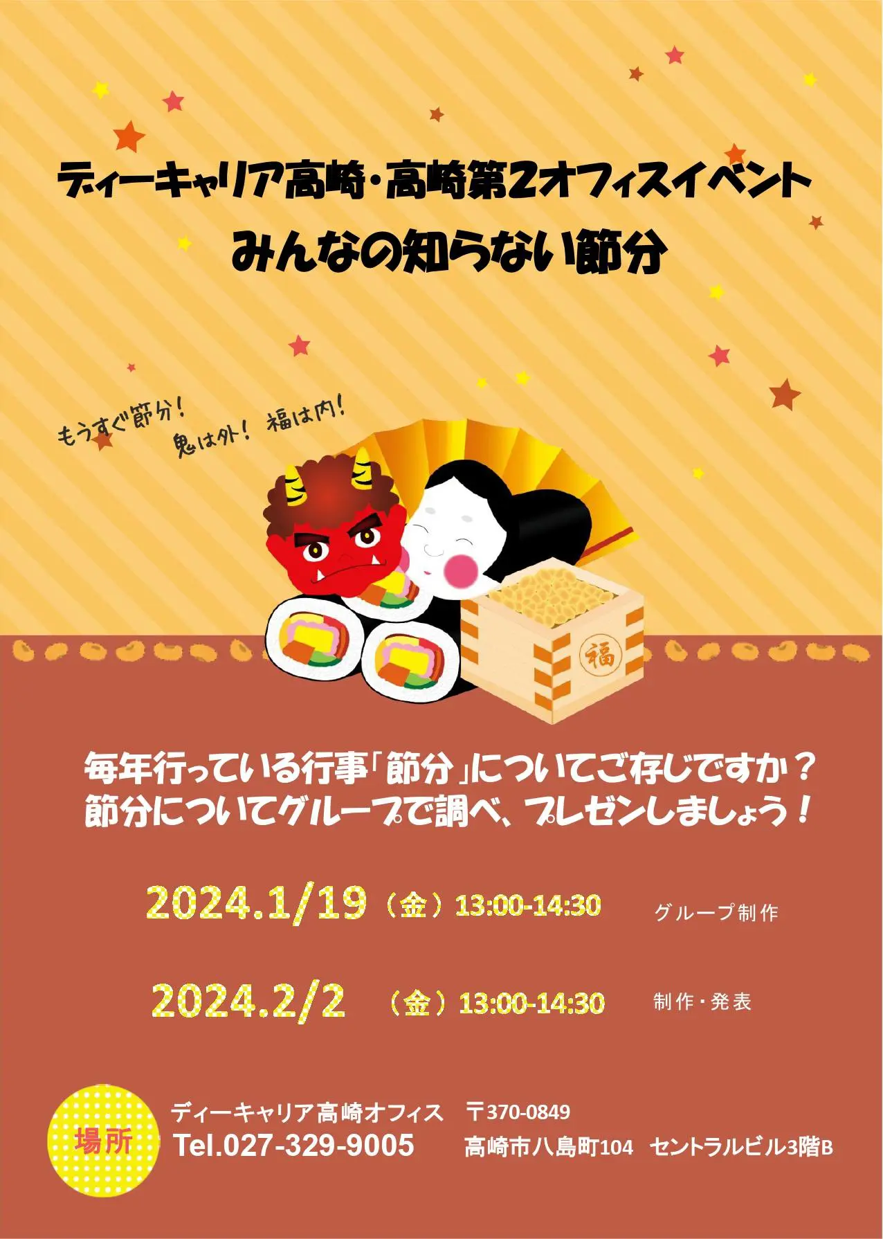 【ディーキャリア高崎オフィス】01月19日(金)・02月02日(金)「プレゼンテーション企画 ~あなたの知らない節分~」