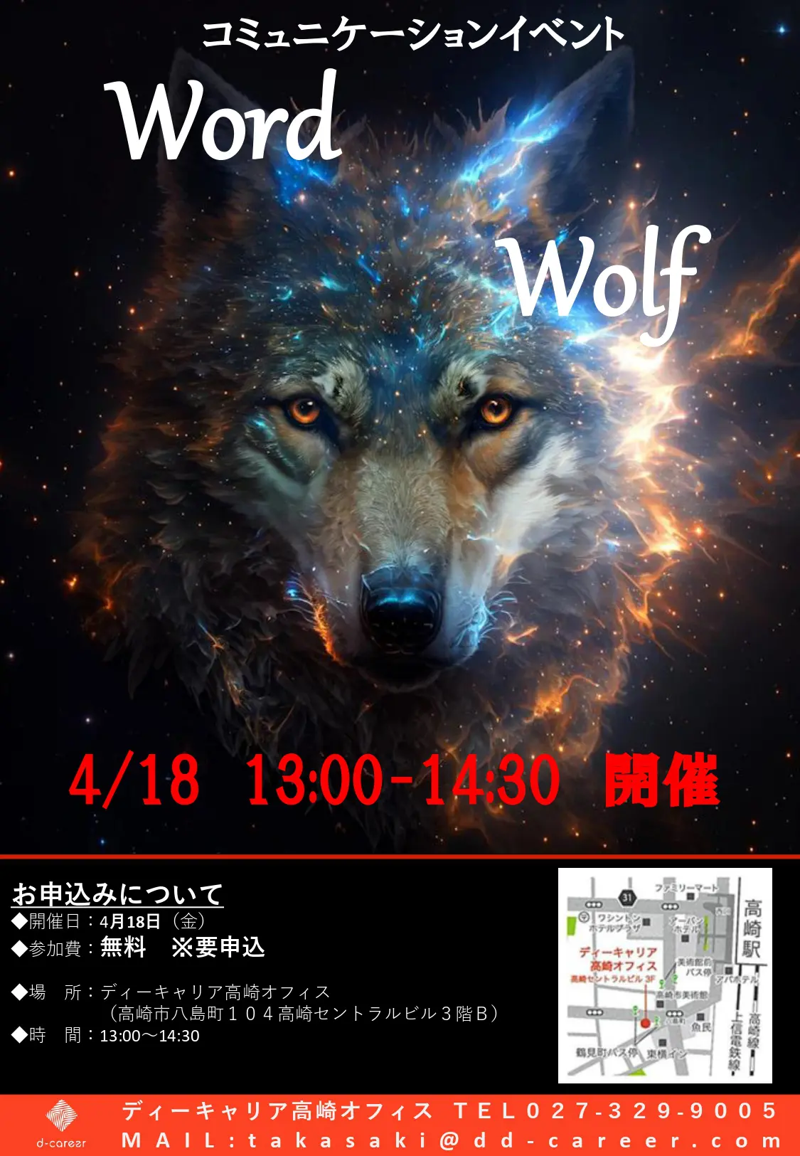 【ディーキャリア高崎オフィス】4月18日(金)「コミュニケーションイベント『ワードウルフ』」