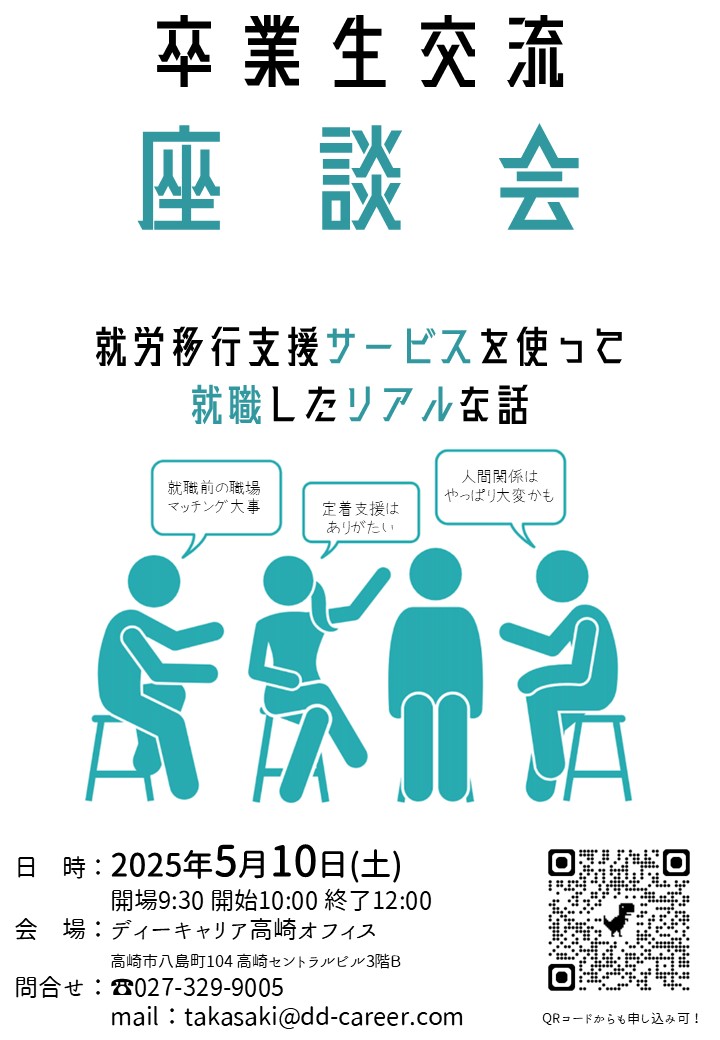 【ディーキャリア高崎オフィス】5月10日(土)「卒業生交流座談会」