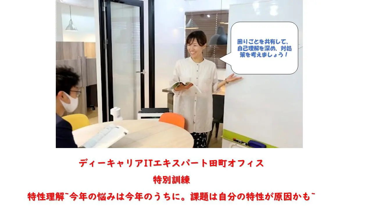 【ディーキャリアITエキスパート田町オフィス】12月16日(金)「特性理解~今年の悩みは今年のうちに。課題は自分の特性が原因かも~」