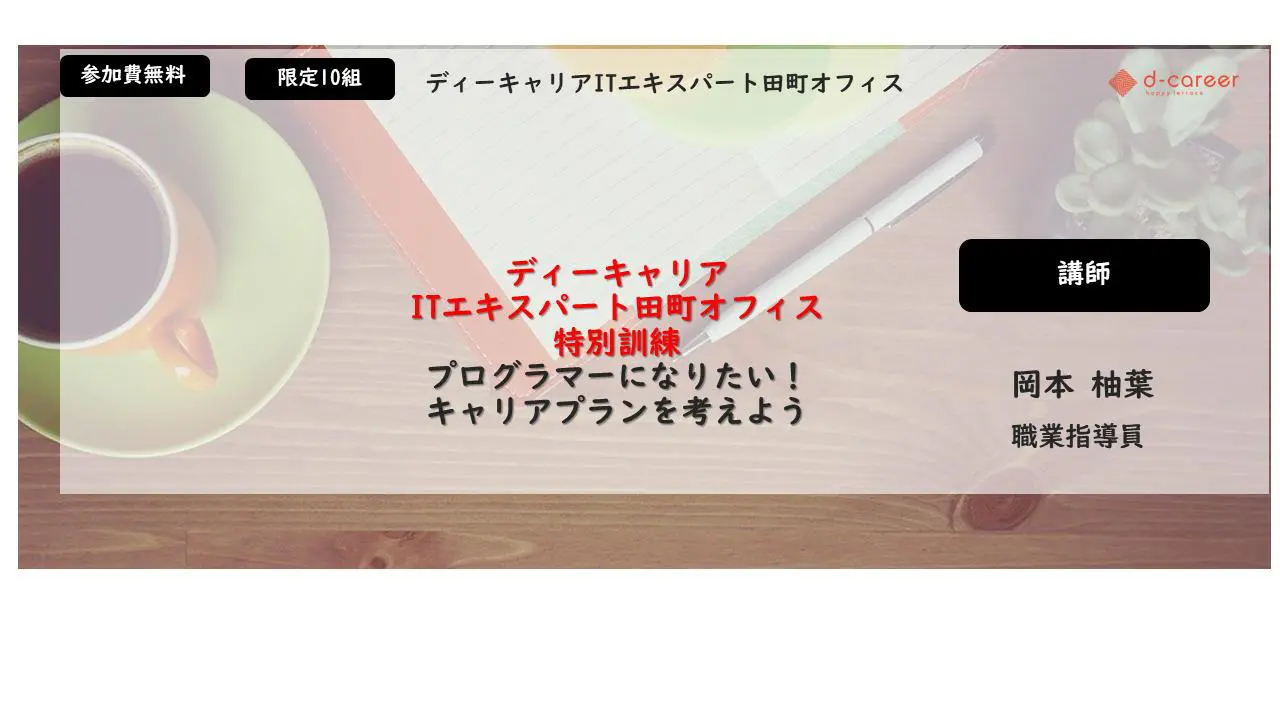 【ディーキャリアITエキスパート田町オフィス】2023年2月3日(金)「【オフライン開催】プログラマーになりたい!キャリアプランを考えよう」
