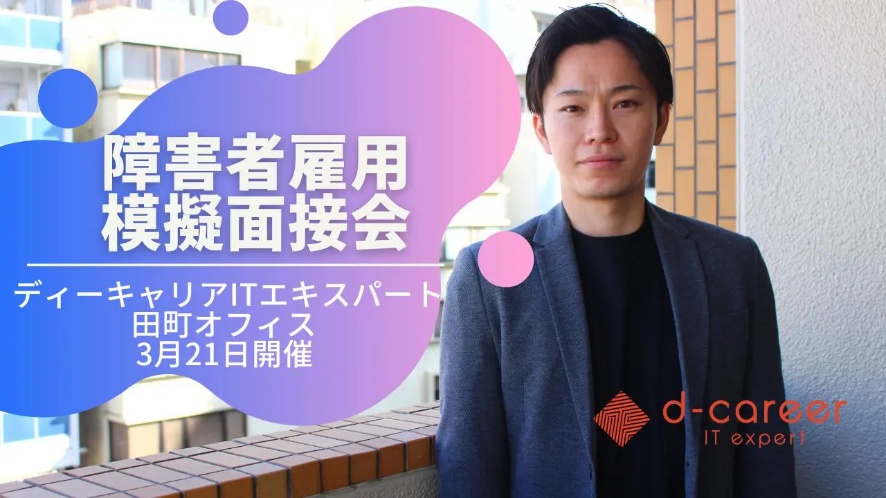 【ディーキャリアITエキスパート田町オフィス】3月21日(火)「【障害者雇用模擬面接会②】ディーキャリアITエキスパート田町開催!」