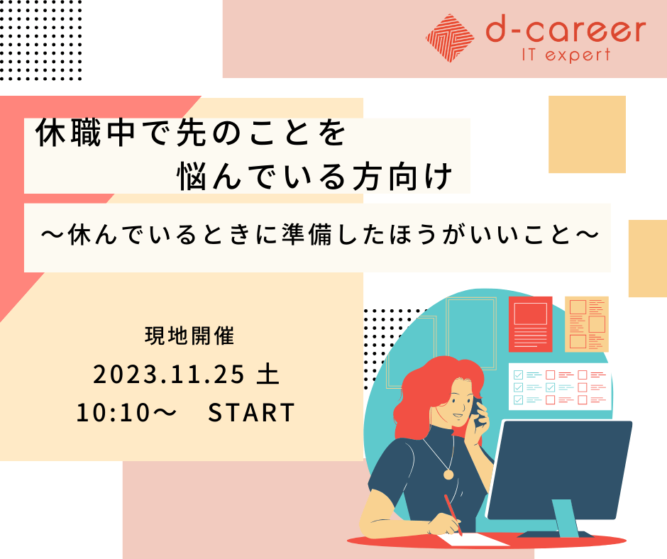 【ディーキャリアITエキスパート田町オフィス】11月25日(土)開催「休職中で先のことを悩んでいる方向け~休んでいるときに準備したほうがいいこと~」